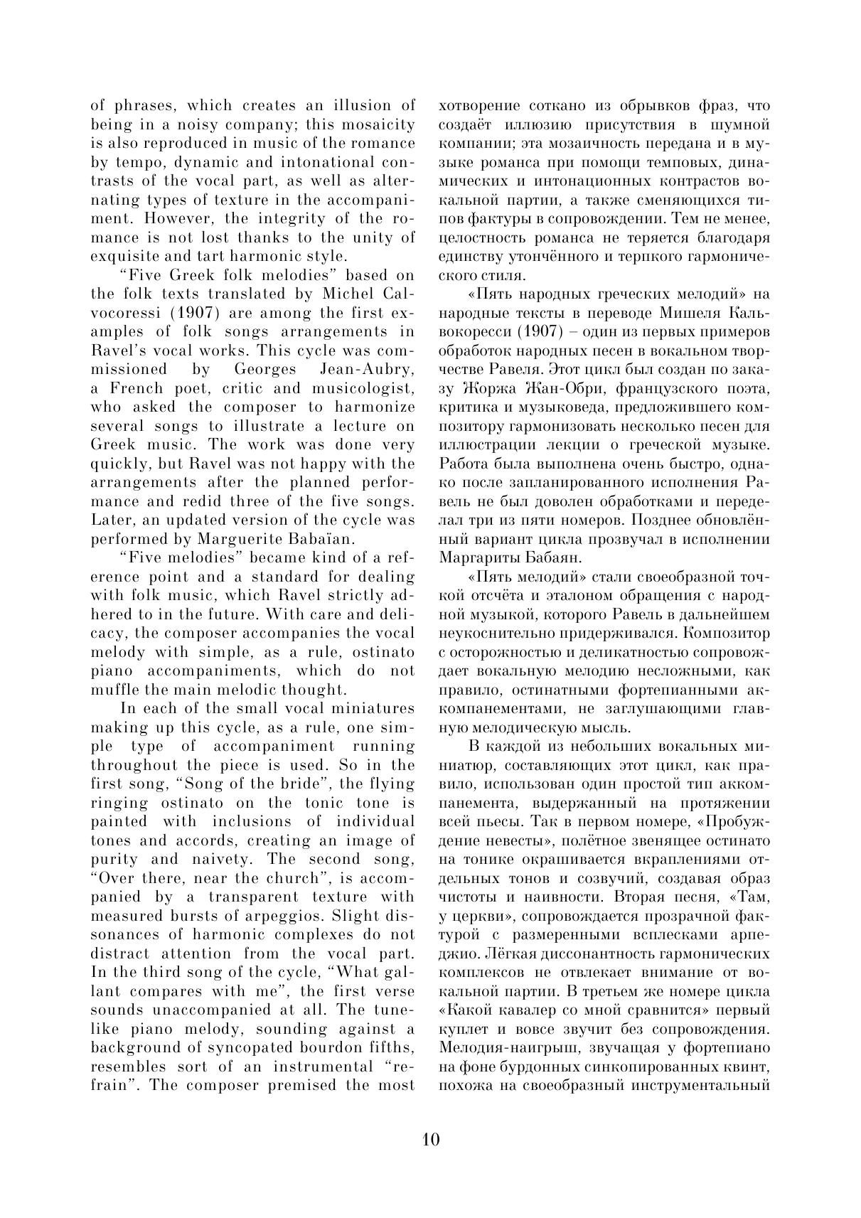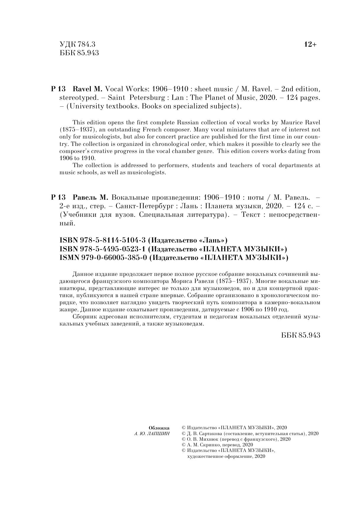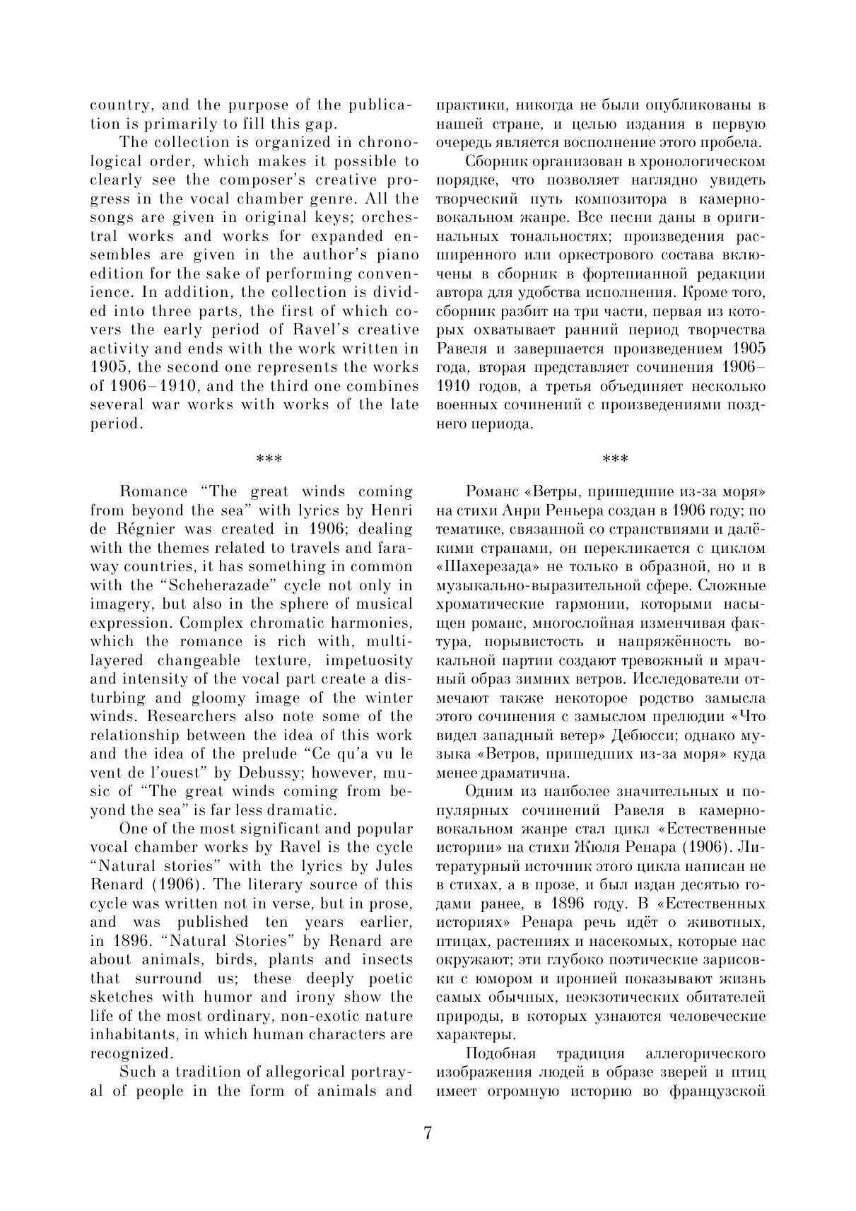 Данное издание продолжает первое полное русское собрание вокальных сочинений выдающегося французского композитора Мориса Равеля (1875–1937). Многие вокальные миниатюры, представляющие интерес не только для музыковедов, но и для концертной практики, публикуются в нашей стране впервые. Собрание организовано в хронологическом порядке, что позволяет наглядно увидеть творческий путь композитора в камерно-вокальном жанре. Данное издание включает произведения, датируемые с 1906 по 1910 год.