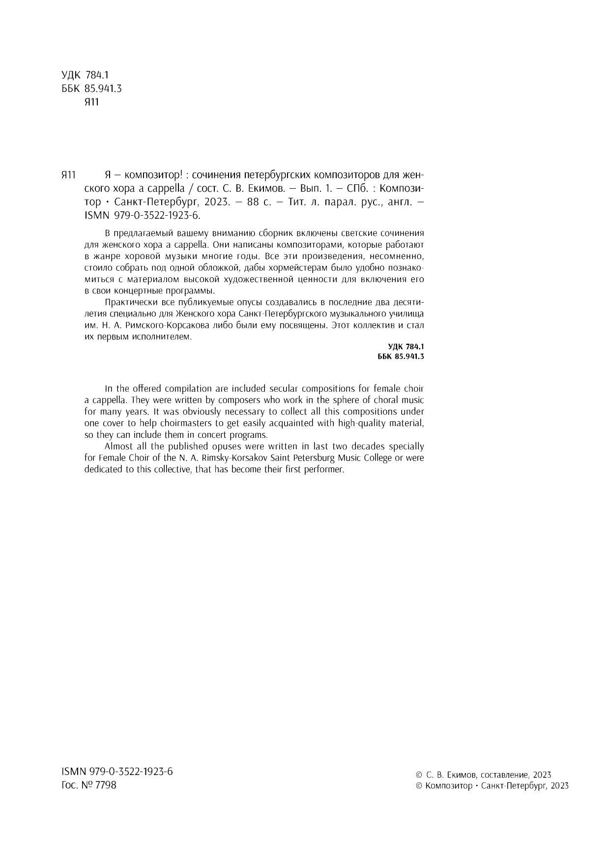 Я — композитор! Сочинения петербургских композиторов для женского хора a cappella. Выпуск 1