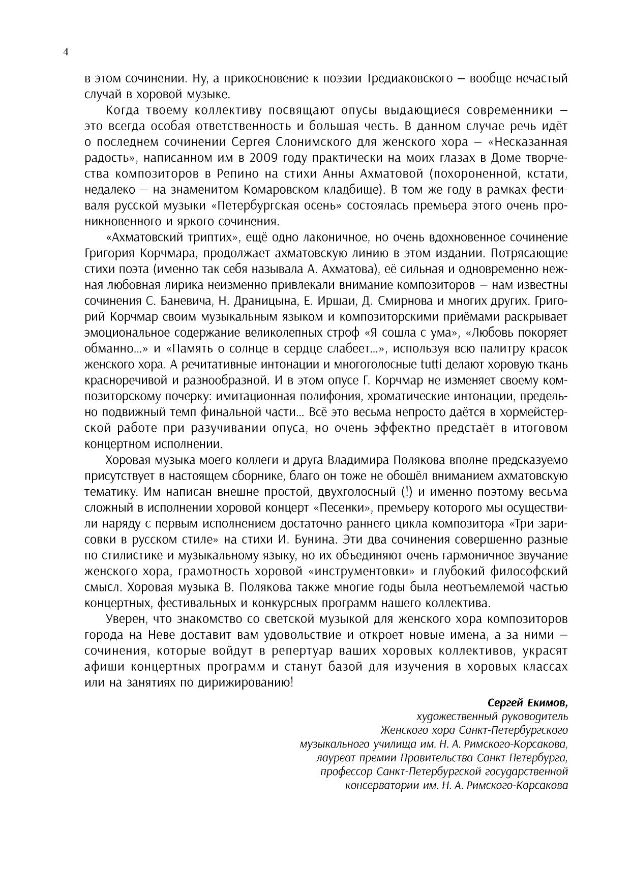 В предлагаемый вашему вниманию сборник включены светские сочинения для женского хора a cappella. Они написаны композиторами, которые работают в жанре хоровой музыки многие годы. Все эти произведения, несомненно, стоило собрать под одной обложкой, дабы хормейстерам было удобно познакомиться с материалом высокой художественной ценности для включения его в свои концертные программы.