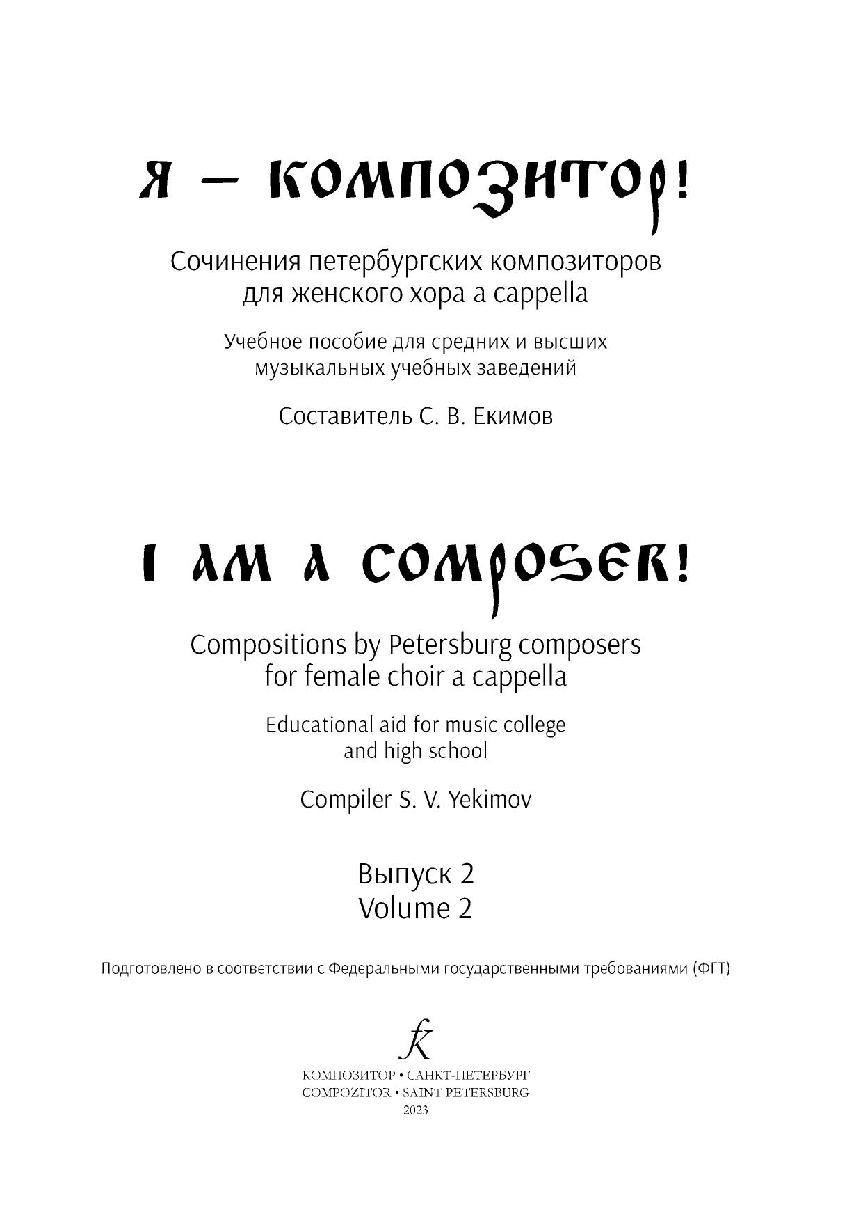 Я — композитор! Сочинения петербургских композиторов для женского хора a cappella. Выпуск 2