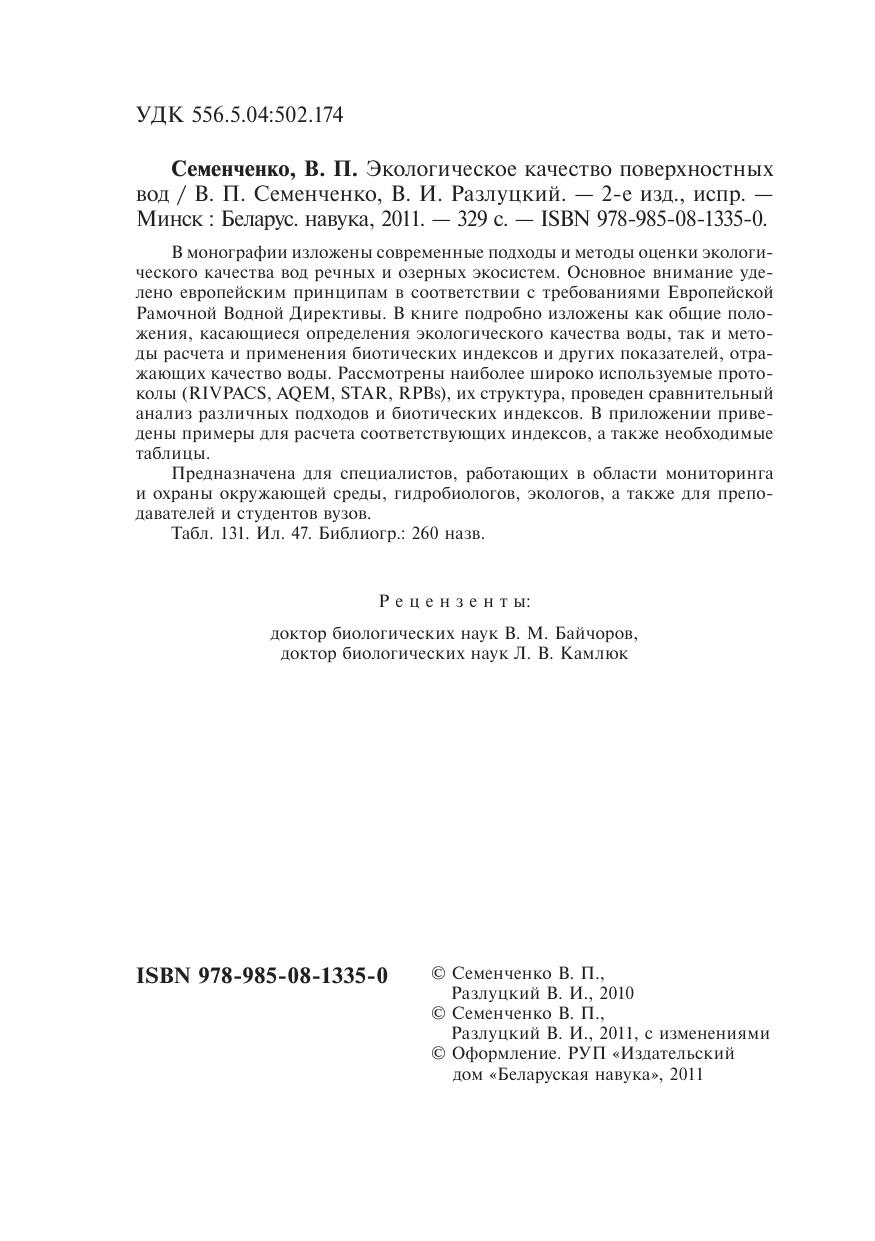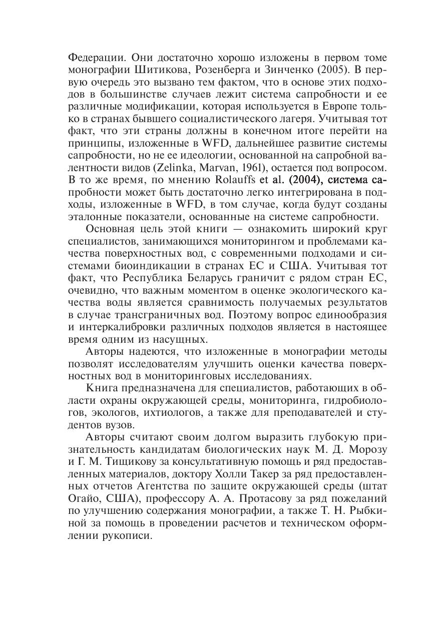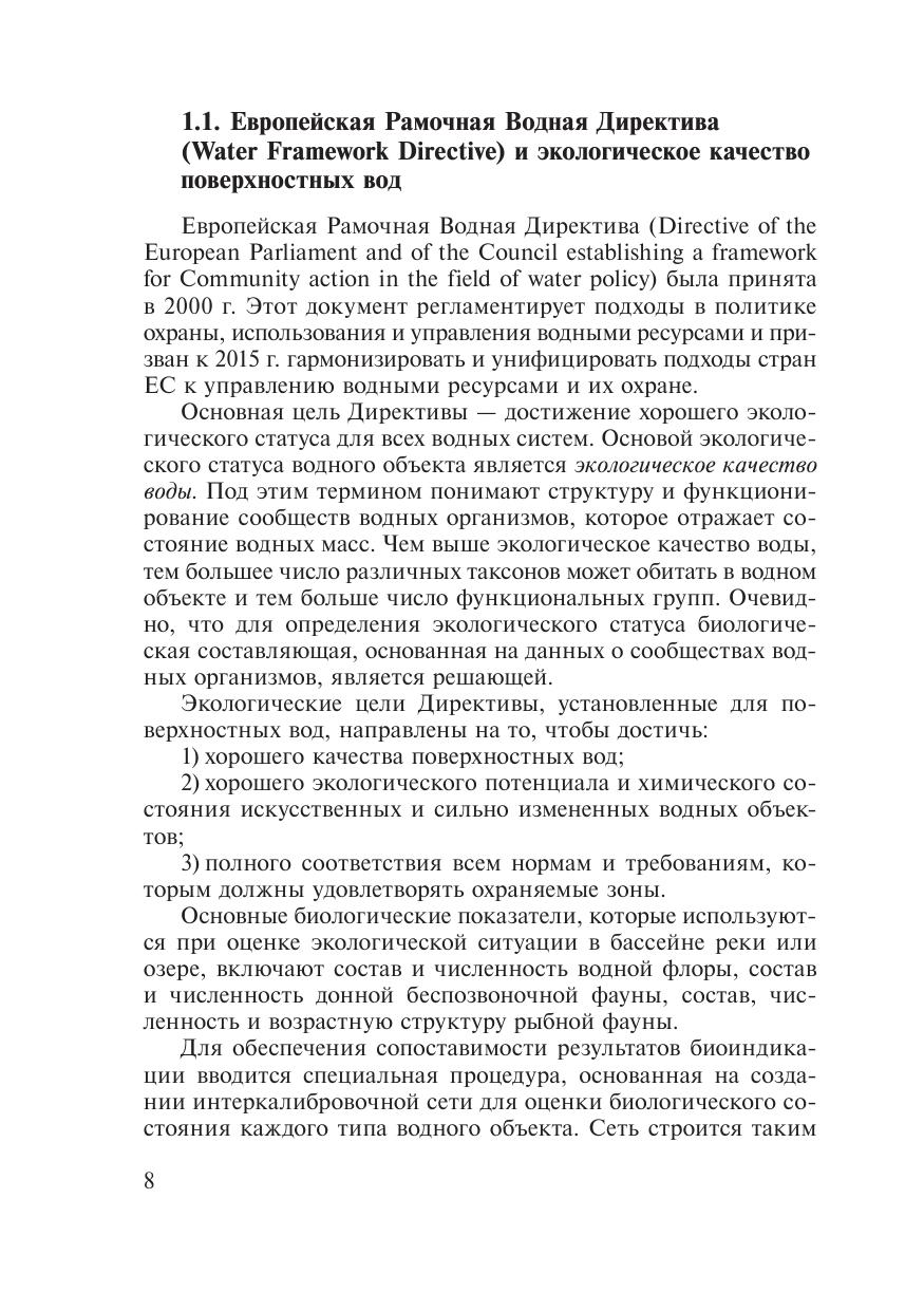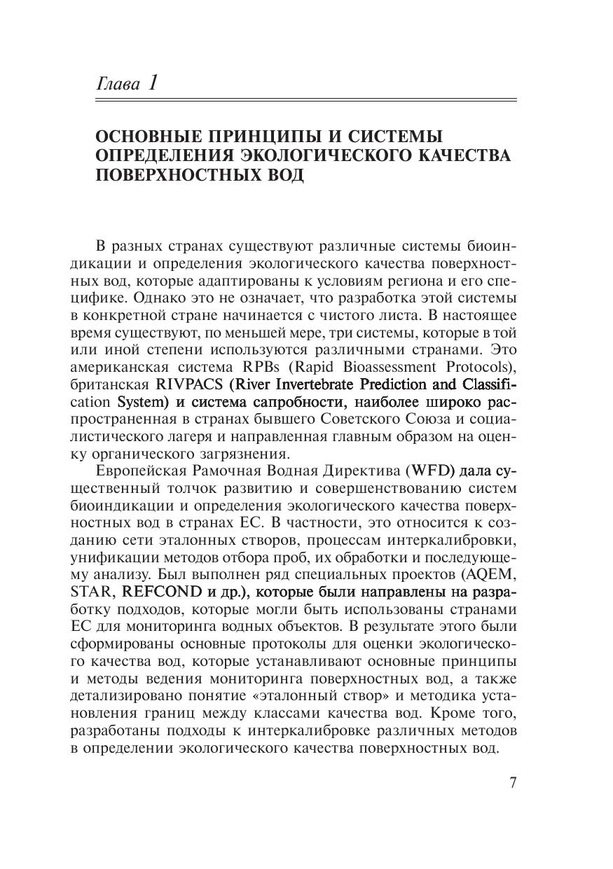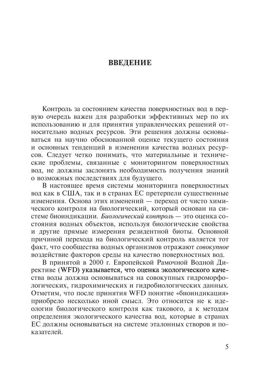 В монографии изложены современные подходы и методы оценки экологического качества вод речных и озерных экосистем. Основное внимание уделено европейским принципам в соответствии с требованиями Европейской Рамочной Водной Директивы. В книге подробно изложены как общие положения, касающиеся определения экологического качества воды, так и методы расчета и применения биотических индексов и других показателей, отражающих качество воды. Рассмотрены наиболее широко используемые протоколы (RIVPACS, AQEM, STAR, RPBs), их структура, проведен сравнительный анализ различных подходов и биотических индексов. В приложении приведены примеры для расчета соответствующих индексов, а также необходимые таблицы. Предназначена для специалистов, работающих в области мониторинга и охраны окружающей среды, гидробиологов, экологов, а также для преподавателей и студентов вузов.
