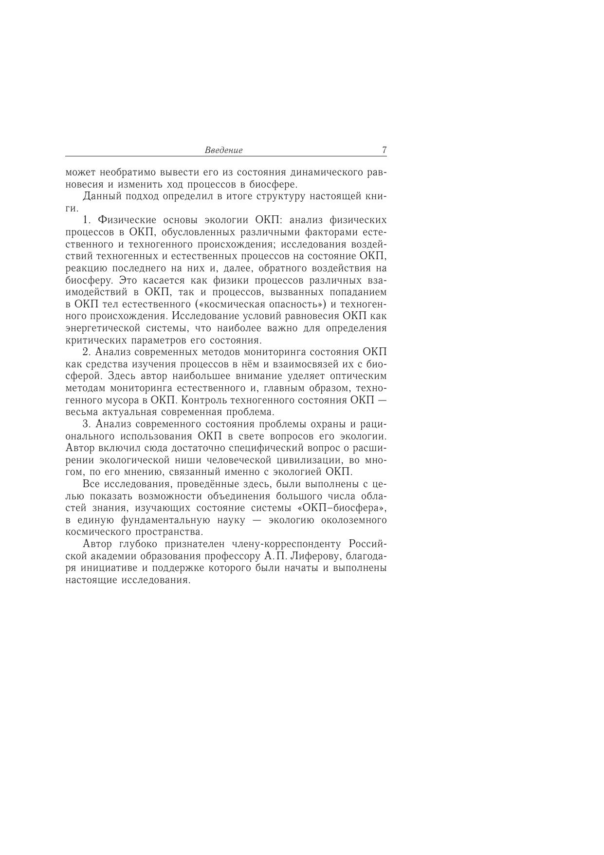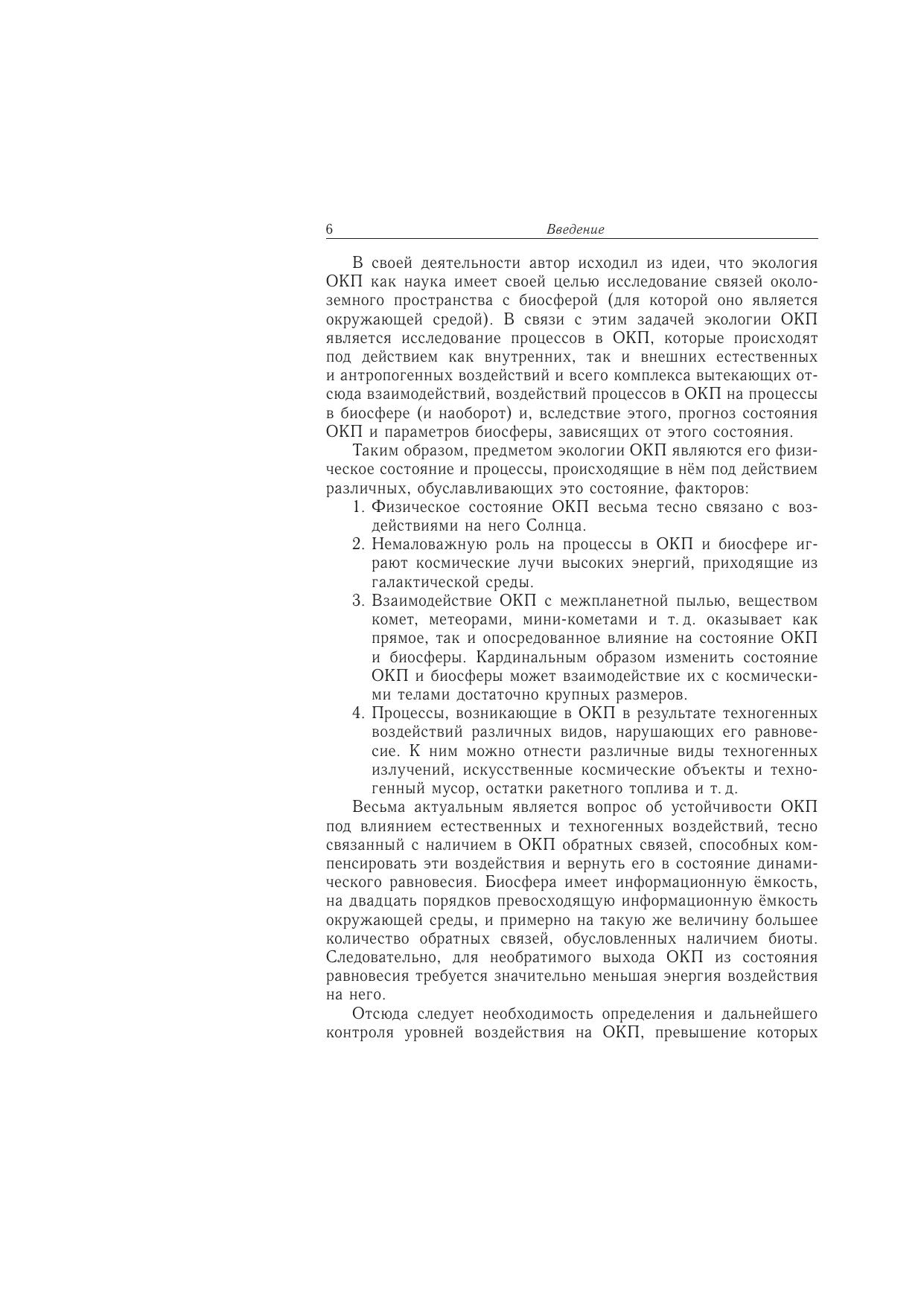 В книге рассмотрены физические основы экологии околоземного космического пространства (ОКП), представлены результаты исследования воздействий техногенных и естественных процессов на состояние ОКП, реакции последнего на них и обратного воздействия на биосферу. Исследованы условия равновесия ОКП как энергетической системы. Представлен анализ современных методов мониторинга состояния ОКП как средства изучения процессов в нём и взаимосвязей их с биосферой. На основе экологических данных проведён анализ современного состояния проблемы охраны и рационального использования ОКП. Для широкого круга специалистов в области экологии, астрономии, геофизики, биологии и медицины, а также для аспирантов и студентов вузов соответствующих специальностей
