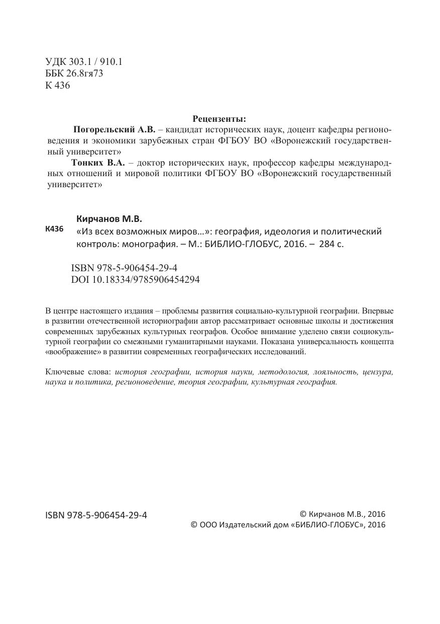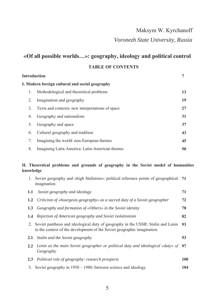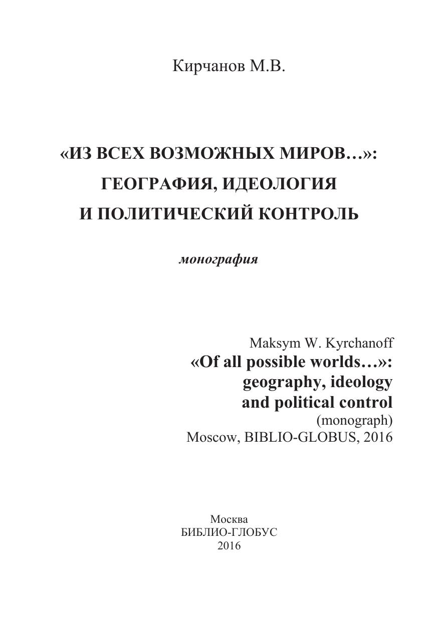 «Из всех возможных миров…»: география, идеология и политический контроль