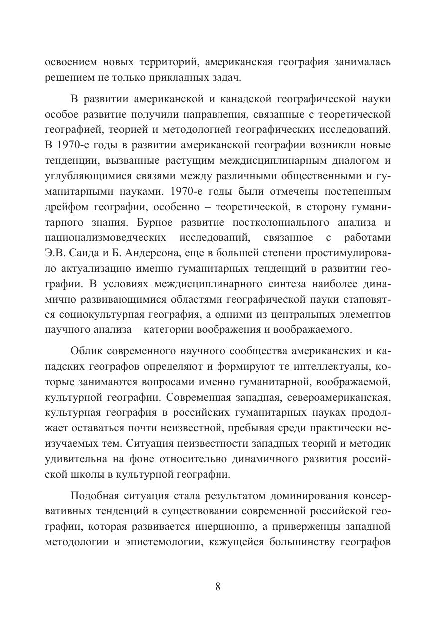 В центре настоящего издания – проблемы развития социально-культурной географии. Впервые в развитии отечественной историографии автор рассматривает основные школы и достижения современных зарубежных культурных географов. Особое внимание уделено связи социокультурной географии со смежными гуманитарными науками. Показана универсальность концепта «воображение» в развитии современных географических исследований.