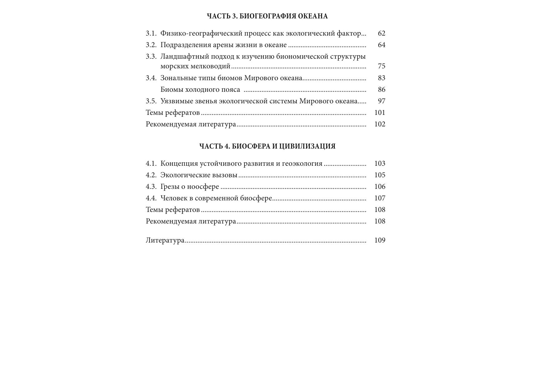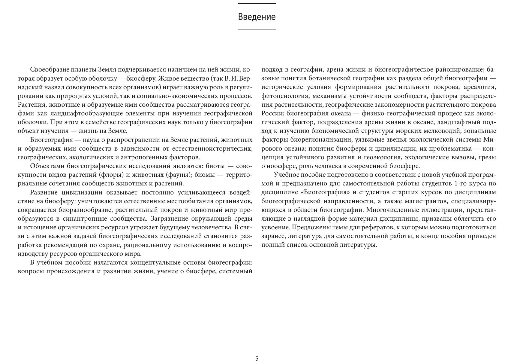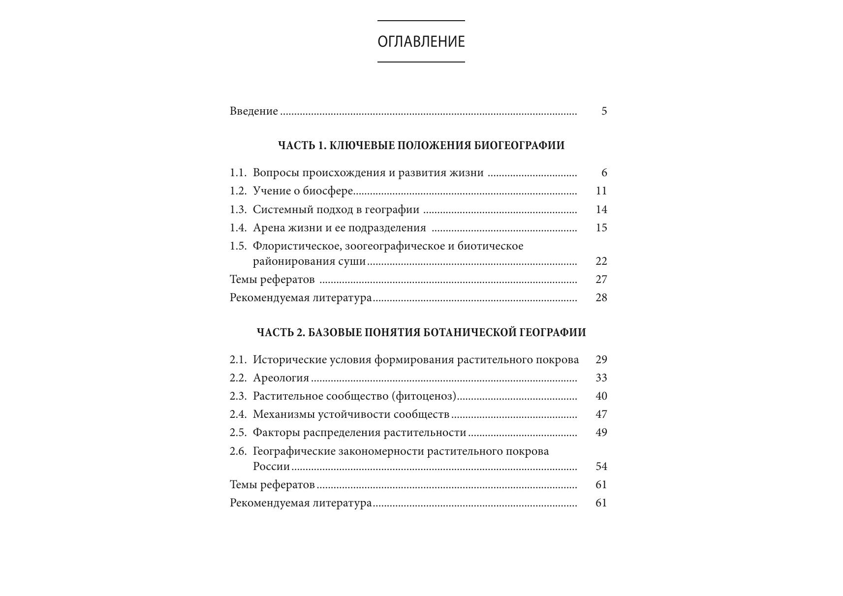 В учебном пособии излагаются концептуальные основы биогеографии: вопросы происхождения и развития жизни, учение о биосфере, системный подход в географии, арена жизни и биогеографическое районирование; базовые понятия ботанической географии как раздела общей биогеографии; биогеография океана, понятия биосферы и цивилизации, их проблематика — концепция устойчивого развития и геоэкология, экологические вызовы, роль человека в современной биосфере и др..