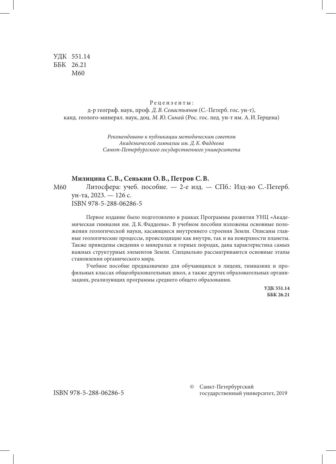 Первое издание подготовлено рамках программы развития УНЦ "Академическая гимназия им. Д.К. Фаддеева". В учебном пособии изложены основные положения геологической науки, касающиеся внутреннего строения Земли. Описаны главные геологические процессы, происходящие как внутри, так и на поверхности планеты. Также приведены сведения о минералах и горных породах, дана характеристика самых важных структурных элементов Земли. Специально рассматриваются основные этапы становления органического мира. Учебное пособие предназначено для обучающихся в лицеях, гимназиях и профильных классах общеобразовательных школ, а также других образовательных организациях, реализующих программы среднего общего образования.