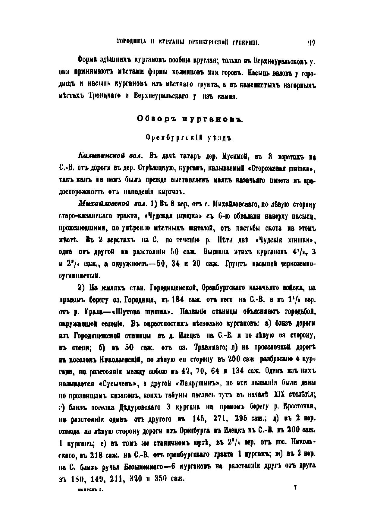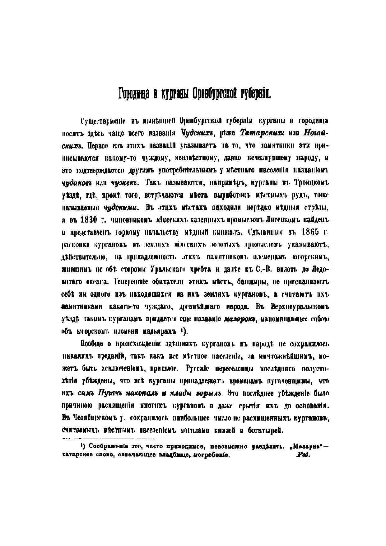 Городища и курганы Оренбургской губернии