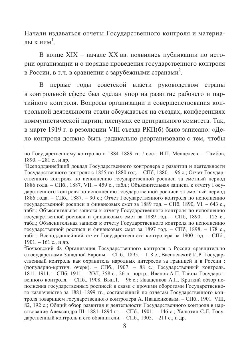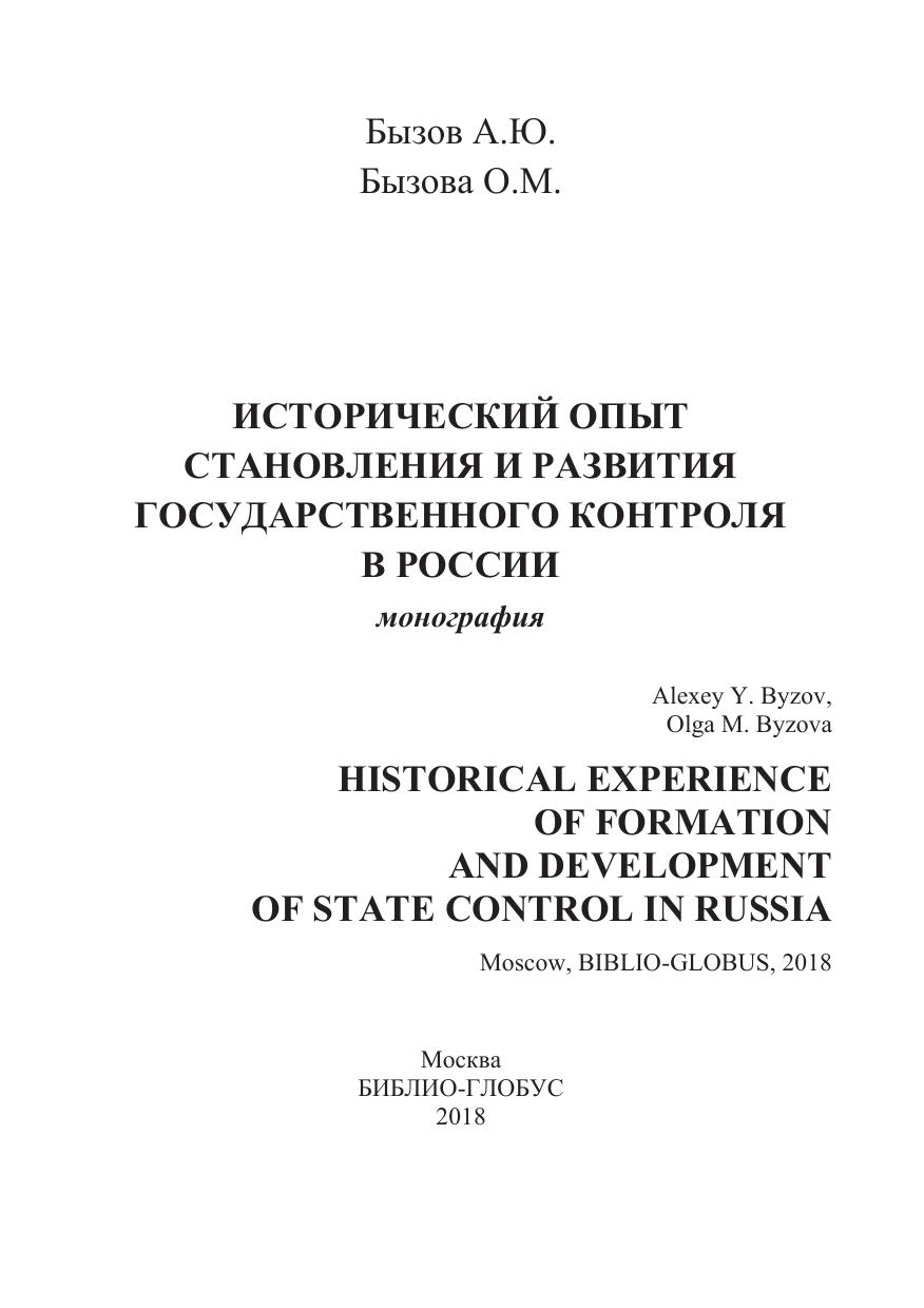развития государственного контроля в России, его современное состояние. Реализация контрольной деятельности показана в соответствии с проблемнохронологическим принципом. Отражены место, роль и особенности государственного контроля в системе государственного управления в различные исторические периоды. Особое внимание уделено конкретным примерам осуществления контрольной деятельности в области административного управления, промышленности, строительства, социальной сферы. Для историков, государственных и муниципальных служащих контрольных органов, научных работников, преподавателей, аспирантов, студентов вузов и колледжей, а также широкого круга читателей, интересующихся отечественной историей и проблемами организации государственного контроля.