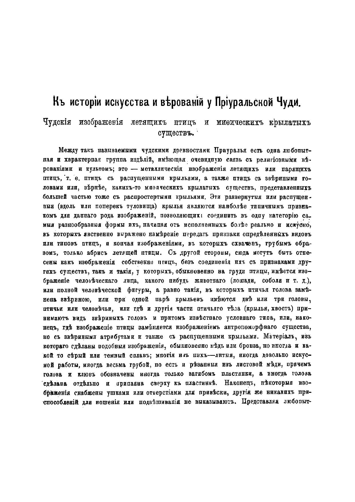 К истории искусства и верований у Приуральской чуди в кн: «Материалы по археологии восточных губерний»