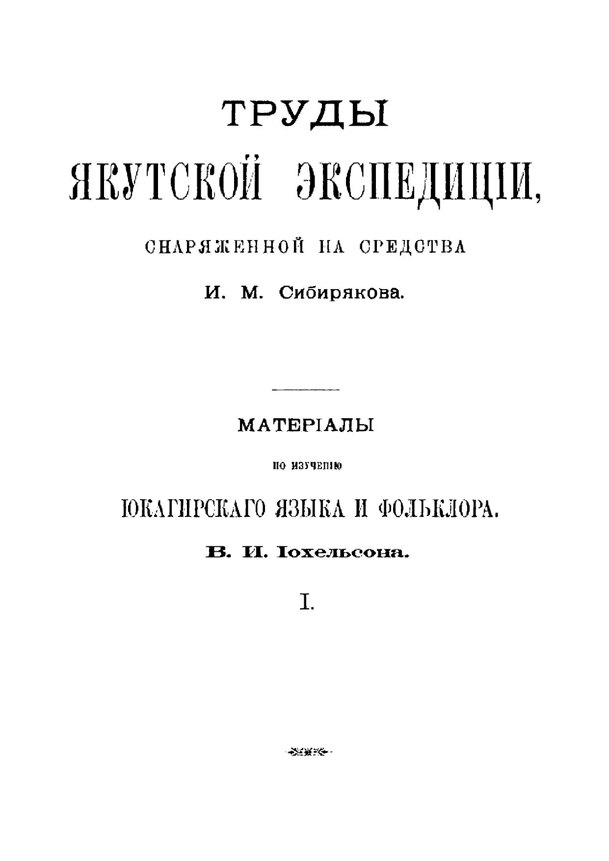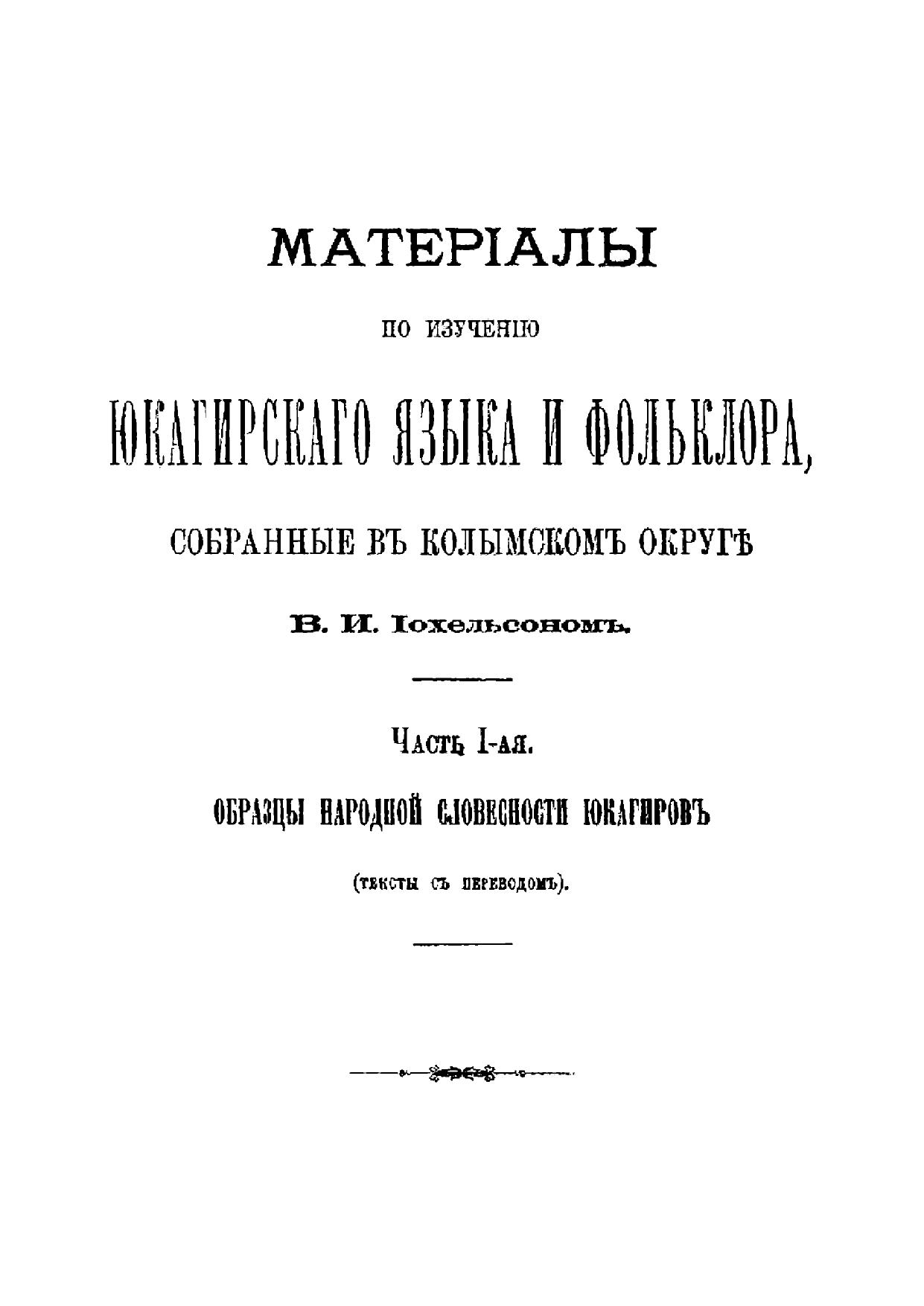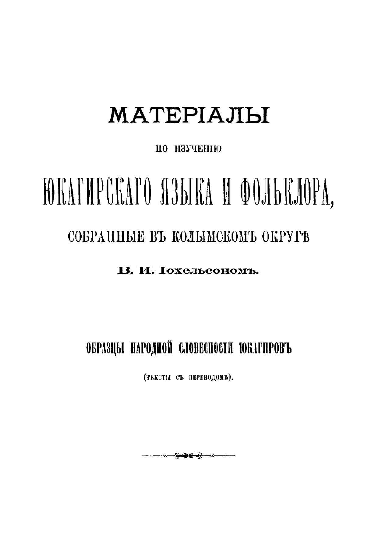 Материалы по изучению юкагирского языка и фольклора, собранные в Колымском округе