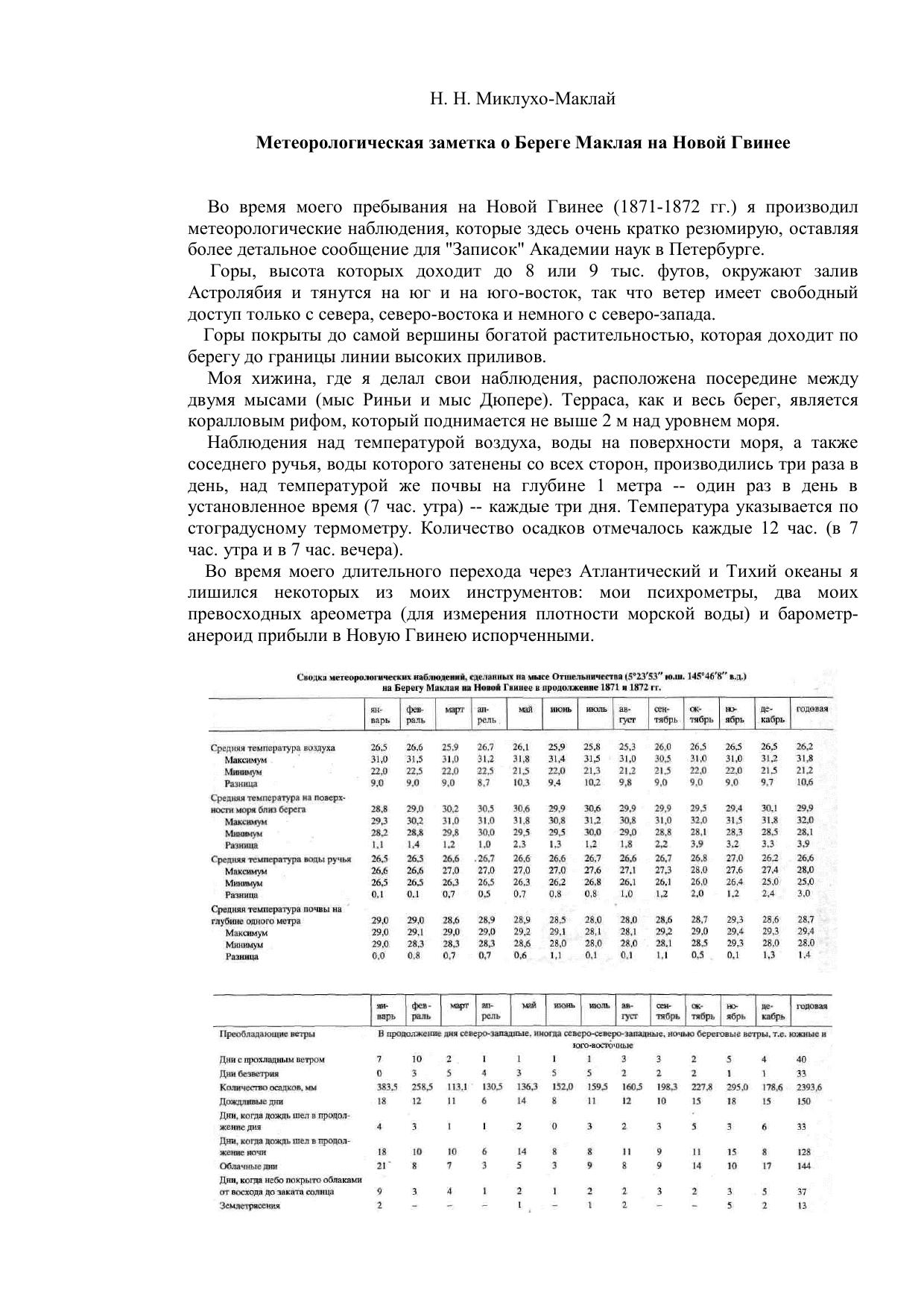Метеорологическая заметка о Береге Маклая на Новой Гвинее