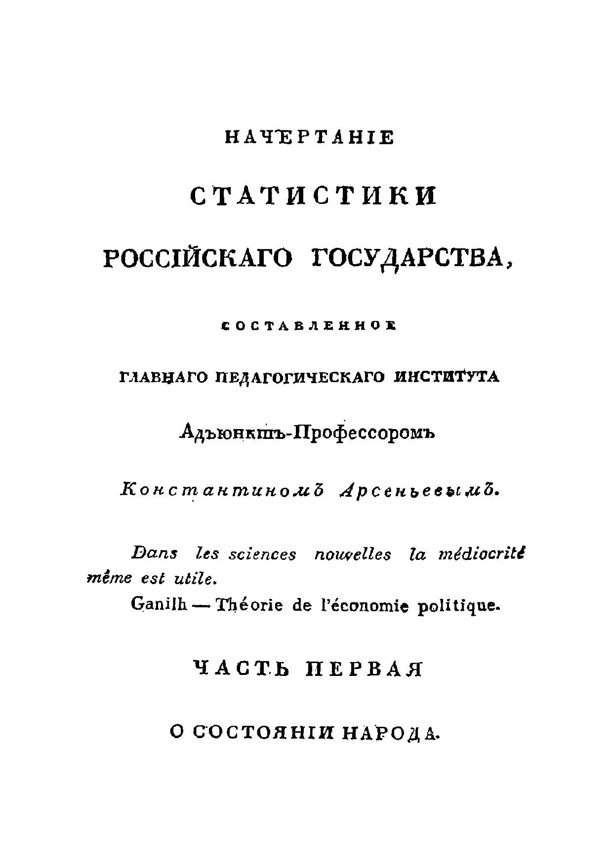 Начертание статистики Российского государства. Часть 1: О состоянии народа