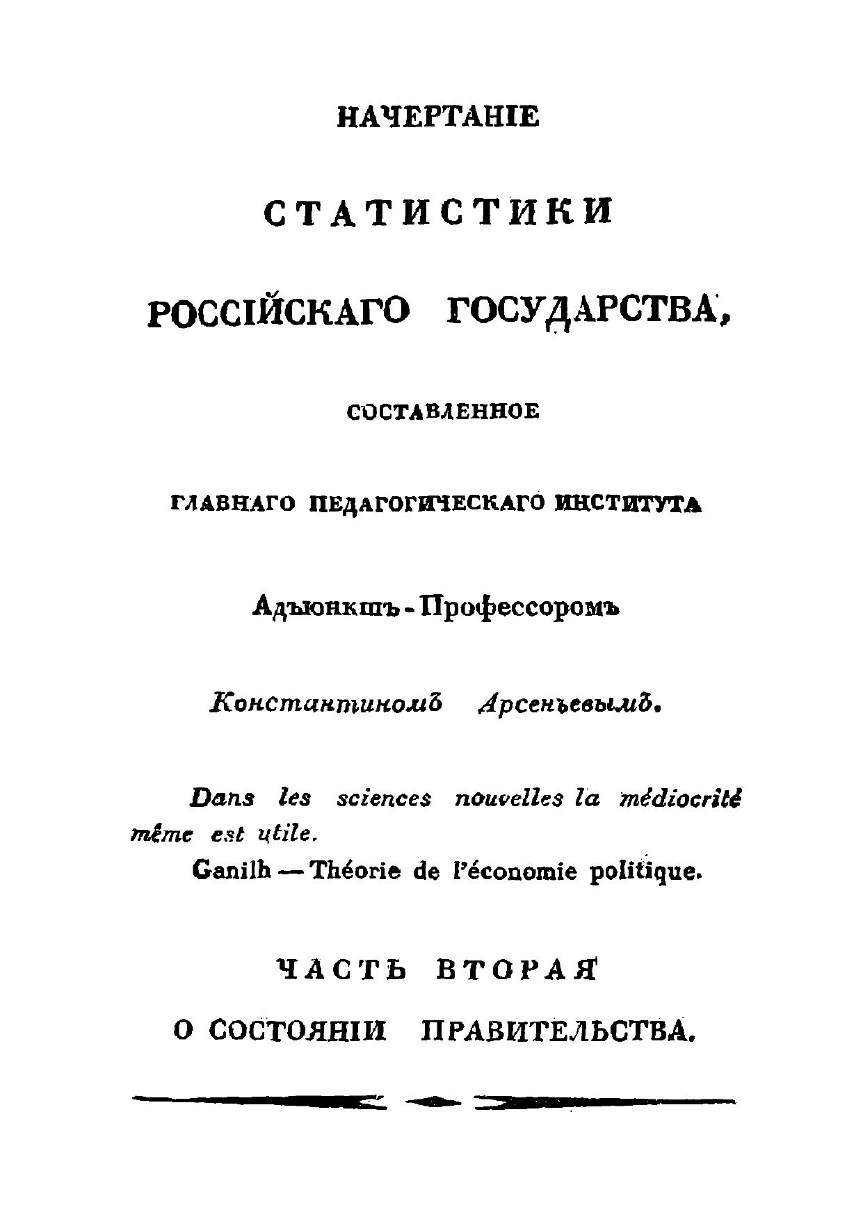 Начертание статистики Российского государства. Часть 2: О состоянии правительства