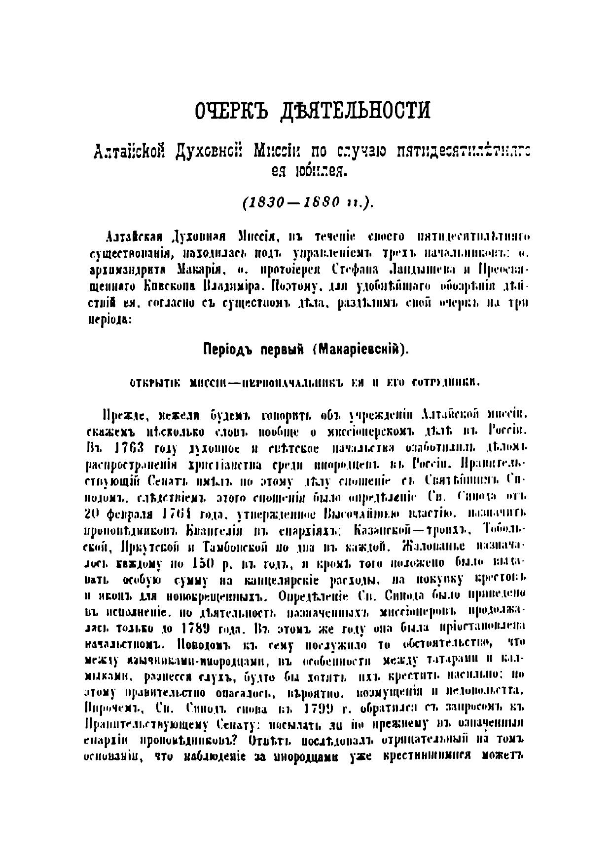 Очерк деятельности Алтайской духовной миссии по случаю 50-летия её юбилея