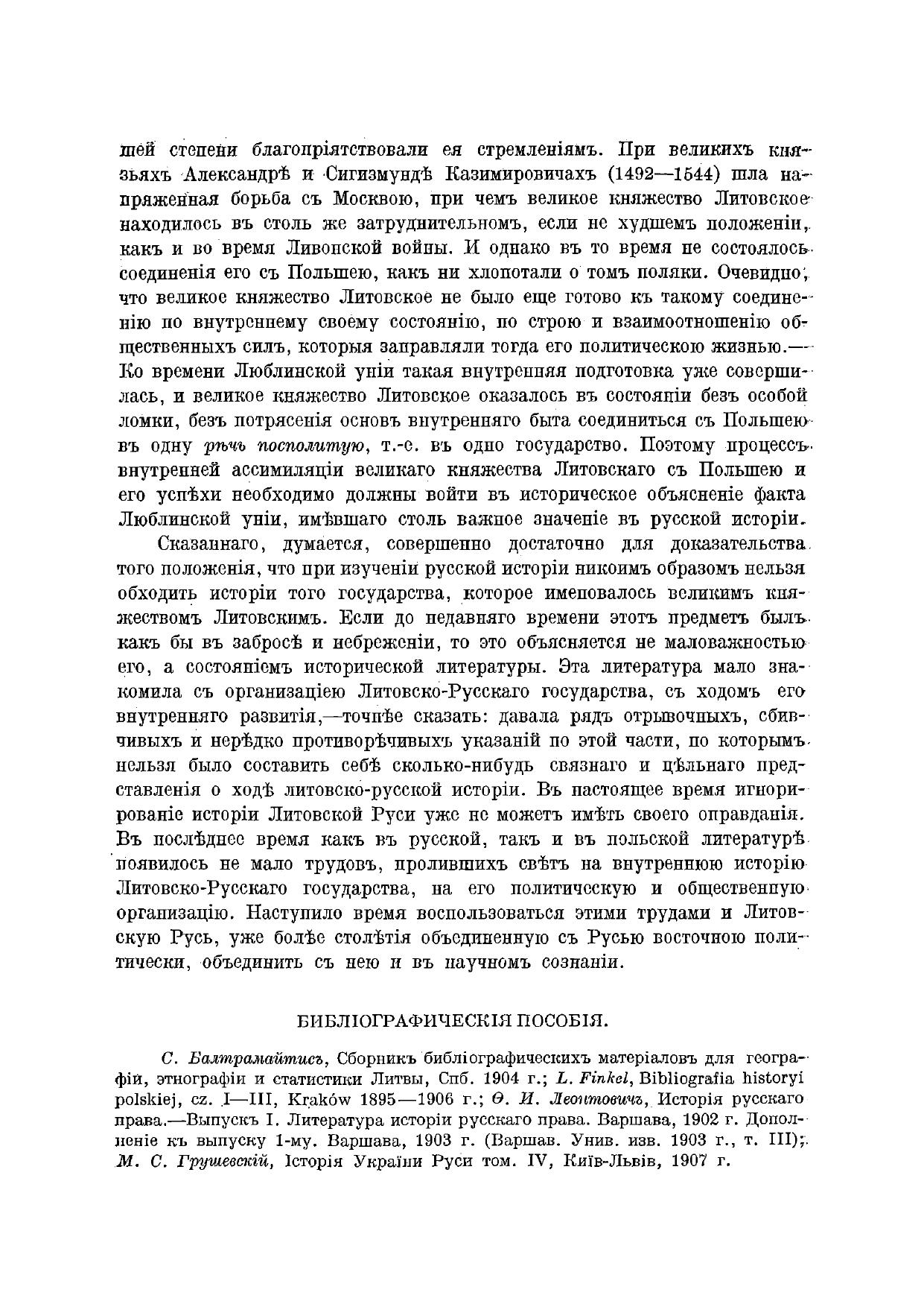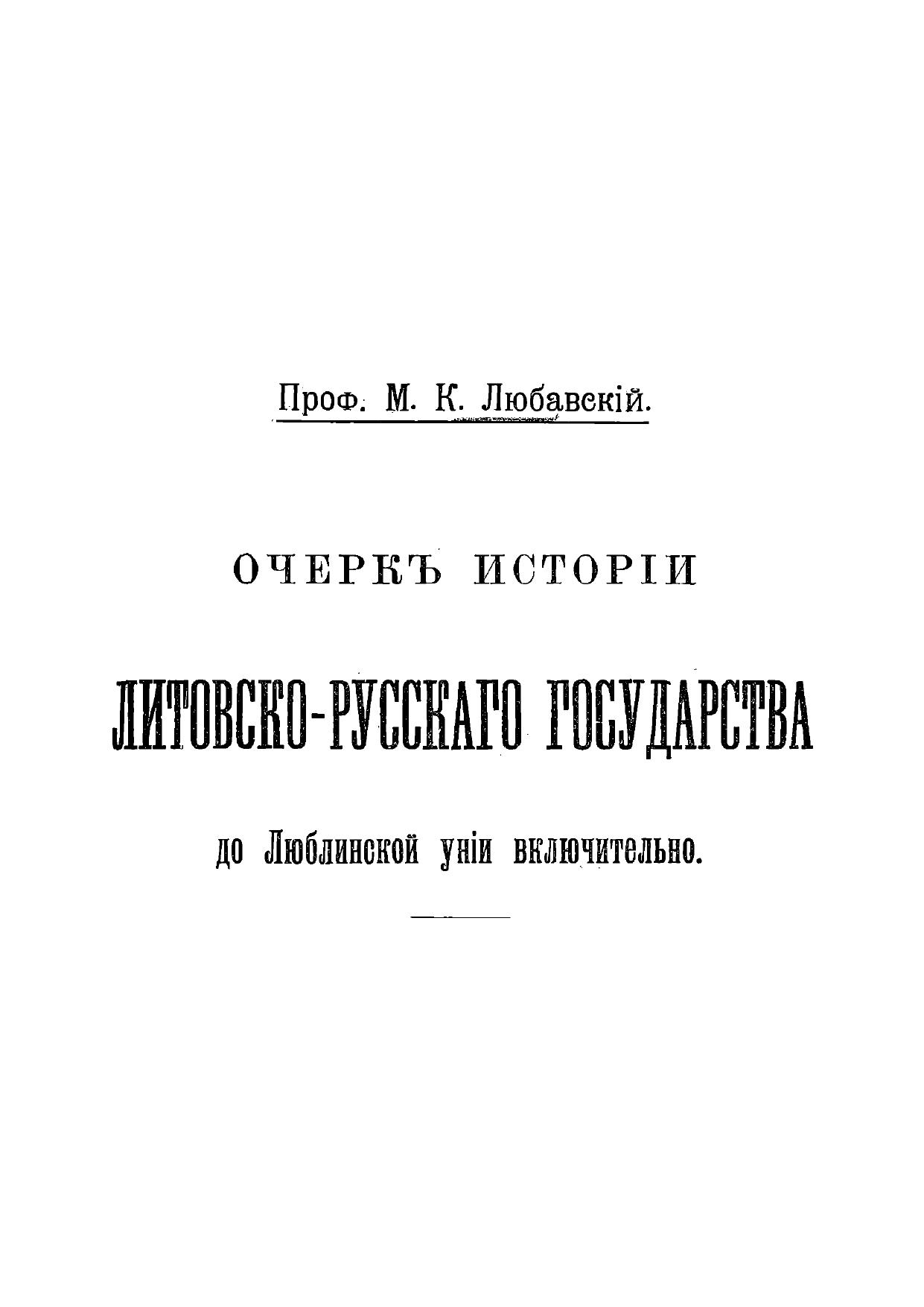 Очерк истории Литовско-Русского государства до Люблинской унии включительно. С приложением текста хартий, выданных княжеству Литовскому и его областям