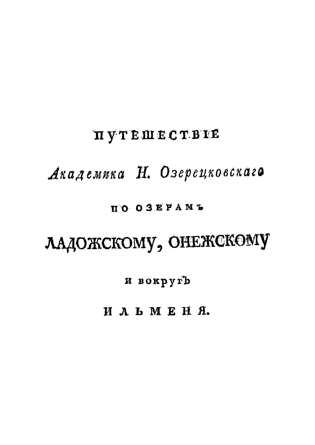 Путешествие академика Н. Озерецковского по озерам Ладожскому, Онежскому и вокруг Ильменя