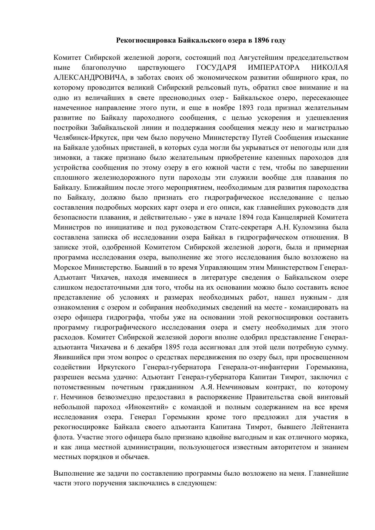 Рекогносцировка Байкальского озера в 1896 г