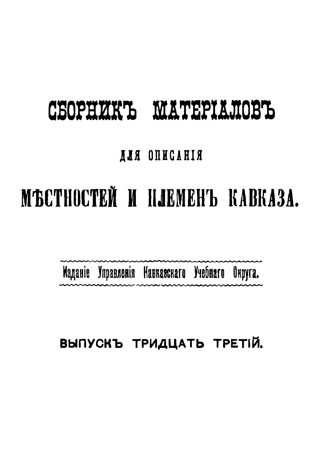 Сборник материалов для описания местностей и племен Кавказа. Выпуск 33. Отдел 1