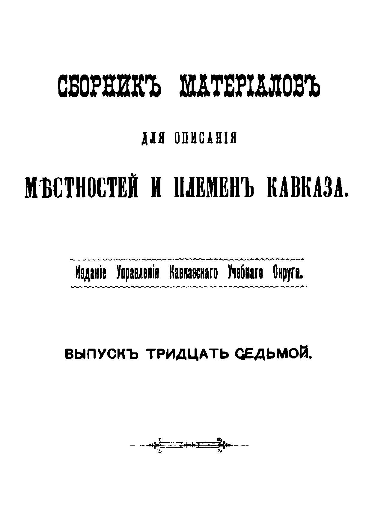 Сборник материалов для описания местностей и племен Кавказа. Выпуск 37. Отдел 2