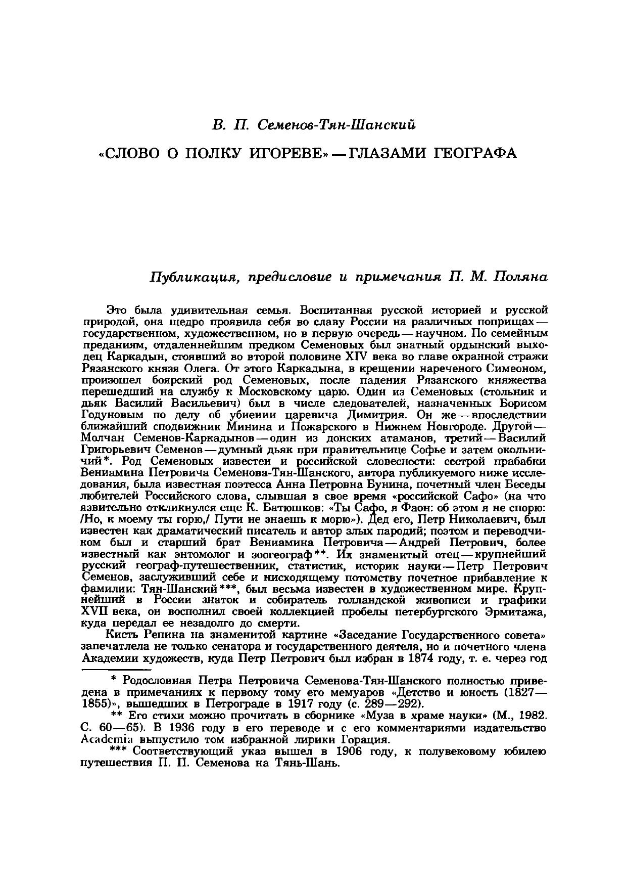Слово о полку Игореве — глазами географа. Публикация, предисловие и примечания П. М. Поляна