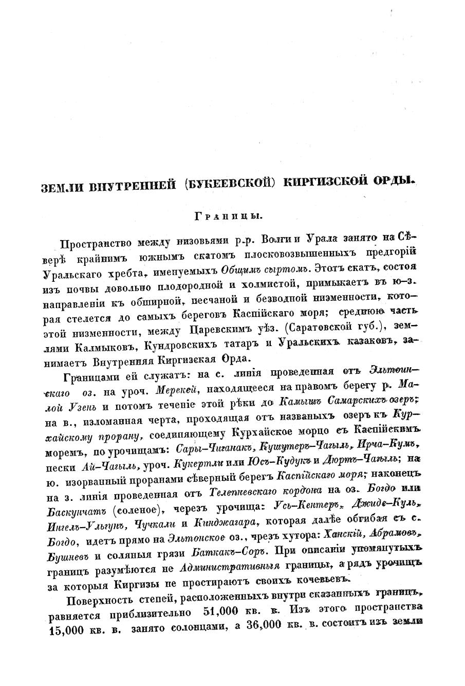 Военно-статистическое обозрение земель киргиз-кайсаков Внутренней Букеевской и Зауральской Малой орды Оренбургского ведомства по рекогносцировкам и материалам, собранным на месте