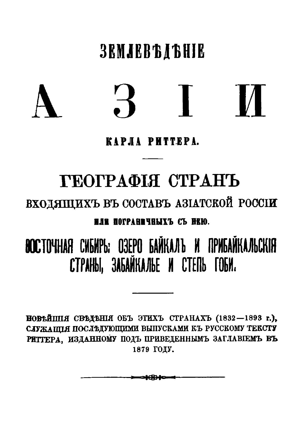Землеведение Азии Карла Риттера. География стран, входящих в состав Азиатской России и пограничных с нею. Восточная Сибирь, оз. Байкал и Прибайкальские страны, Забайкалье и степи Гоби. Часть 1