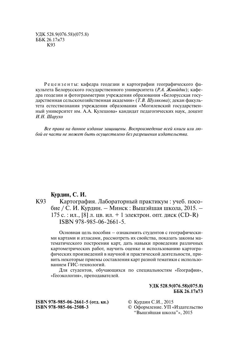 Основная цель пособия – ознакомить студентов с географическими картами и атласами, рассмотреть их свойства, показать законы математического построения карт, дать навыки проведения различных картометрических работ, научить оценке и использованию картографических произведений в научной и практической деятельности, привить некоторые приемы составления карт разной тематики с использованием ГИС-технологий. Для студентов, обучающихся по специальностям «География»,