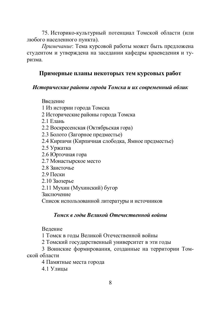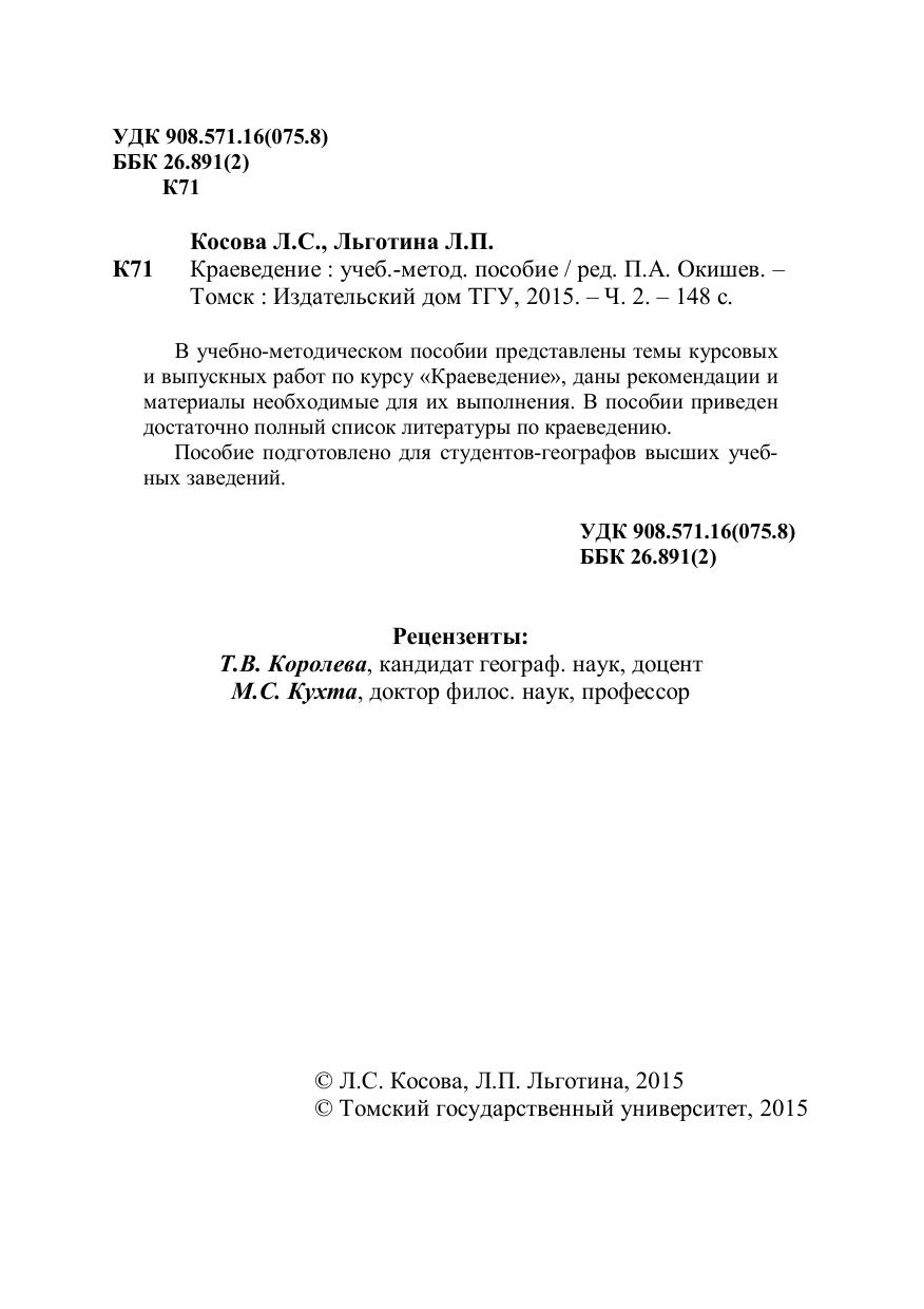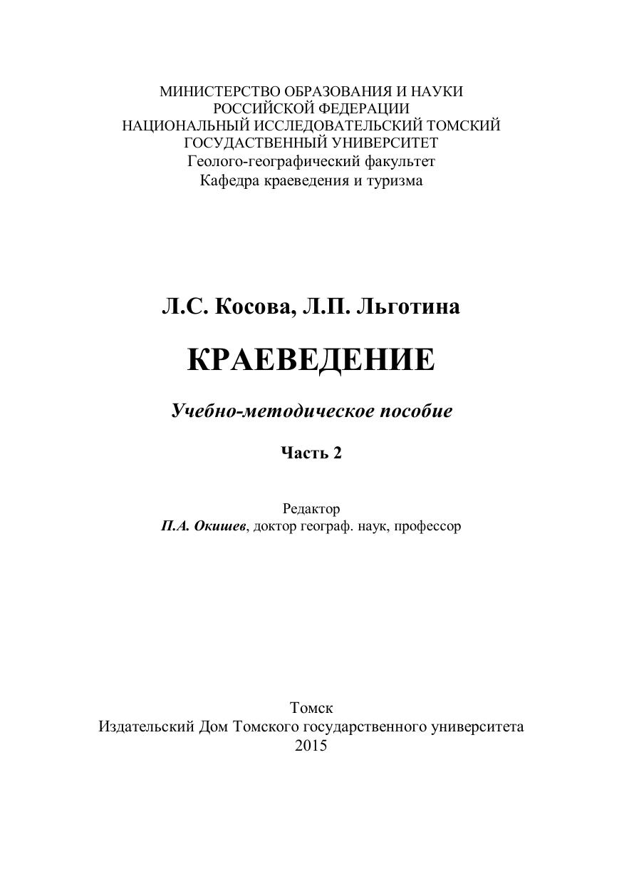 В учебно-методическом пособии представлены темы курсовых и выпускных работ по курсу «Краеведение», даны рекомендации и материалы необходимые для их выполнения. В пособии приведен достаточно полный список литературы по краеведению. Пособие подготовлено для студентов-географов высших учебных заведений.