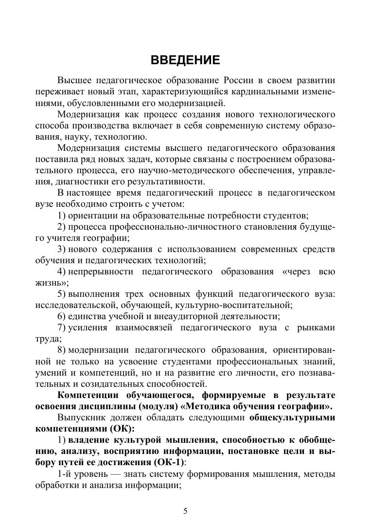 Учебное пособие создано с учетом современных изменений, которые произошли и происходят в содержании и структуре школьной и вузовской географии. В пособии сделана попытка установить более тесную связь лекционного курса «Методика обучения географии» и лабораторно-практических занятий. Цель настоящего пособия — помочь студенту овладеть необходимыми знаниями по методике обучения географии и сформировать профессиональные компетенции будущего педагога. Для этого в пособии даны методические рекомендации по всем основным разделам программы, разработаны задания, вопросы для самопроверки к каждой теме, приведены списки рекомендуемой литературы. Учебное пособие предназначено для студентов, обучающихся по направлению подготовки «Педагогическое образование» (профили подготовки «Биология» и «География»). Пособие может быть рекомендовано учителям географии различных образовательных учреждений.
