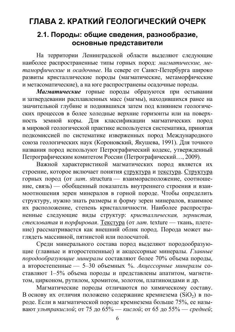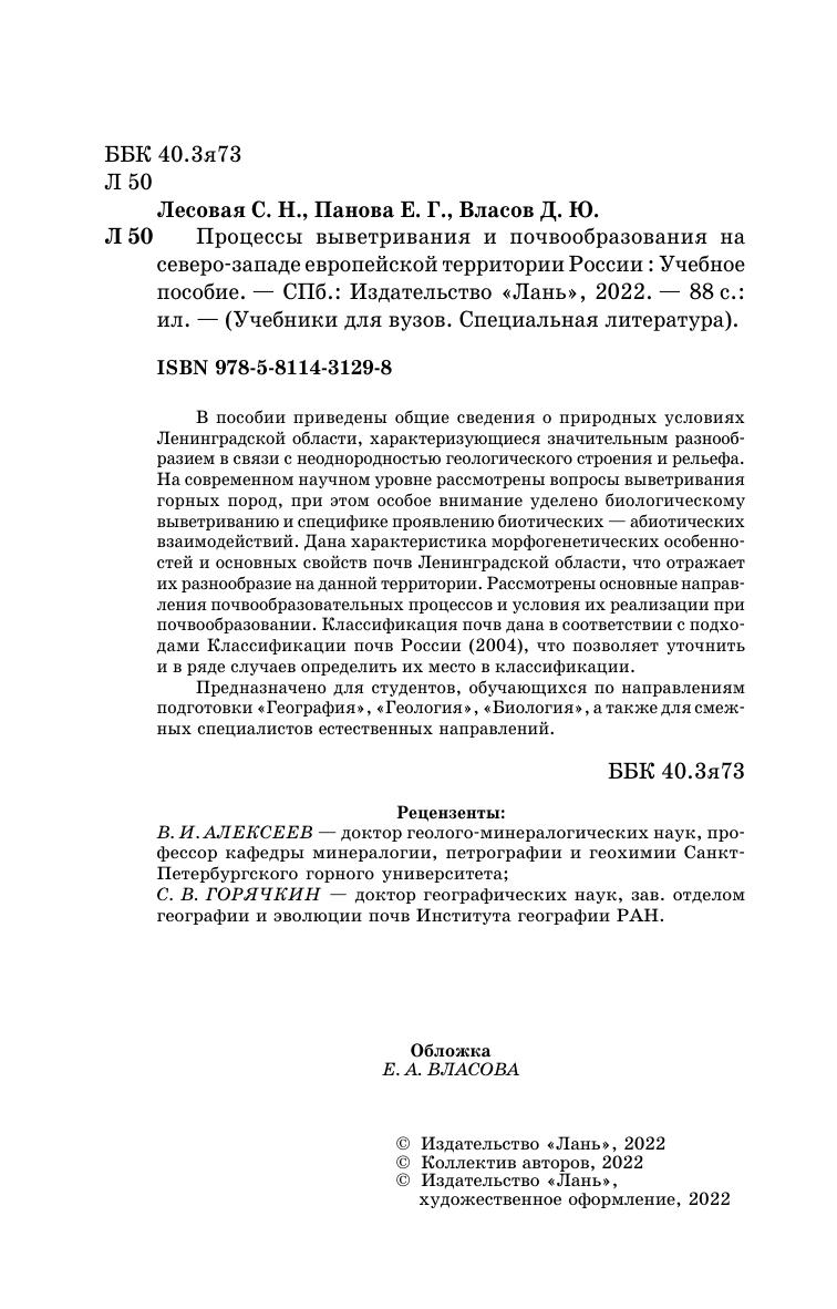 В пособии приведены общие сведения о природных условиях Ленинградской области, характеризующиеся значительным разнообразием в связи с неоднородностью геологического строения и рельефа. На современном научном уровне рассмотрены вопросы выветривания горных пород, при этом особое внимание уделено биологическому выветриванию и специфике проявлению биотических — абиотических взаимодействий. Дана характеристика морфогенетических особенностей и основных свойств почв Ленинградской области, что отражает их разнообразие на данной территории. Рассмотрены основные направления почвообразовательных процессов и условия их реализации при почвообразовании. Классификация почв дана в соответствии с подходами Классификации почв России (2004), что позволяет уточнить и в ряде случаев определить их место в классификации. Предназначено для студентов, обучающихся по направлениям подготовки «География», «Геология», «Биология», а также для смежных специалистов естественных направлений.