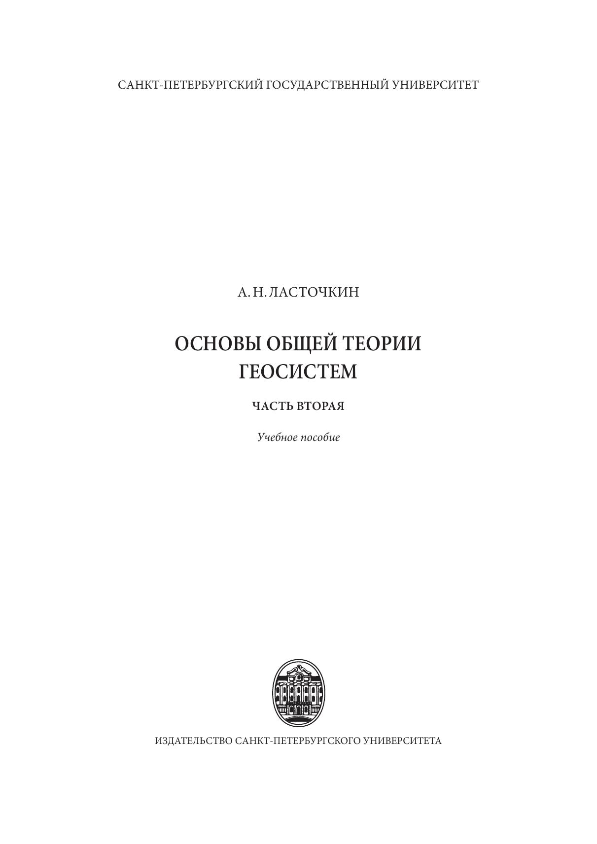 Основы общей теории геосистем: учебное пособие в 2 ч. Ч. 2
