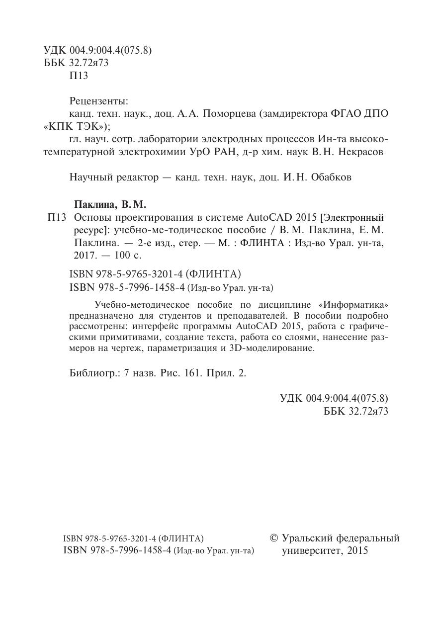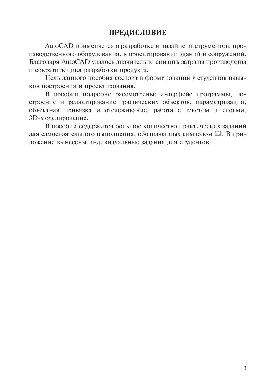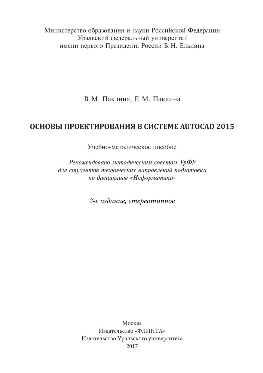 Учебно-методическое пособие по дисциплине "Информатика" предназначено для студентов и преподавателей. В пособии побробно: интерфейс программы AutoCAD 2015, работа с графическими примитивами, создание текста, работа со слоями, нанесение размеров на чертеж, параметризация и 3 D-моделирование