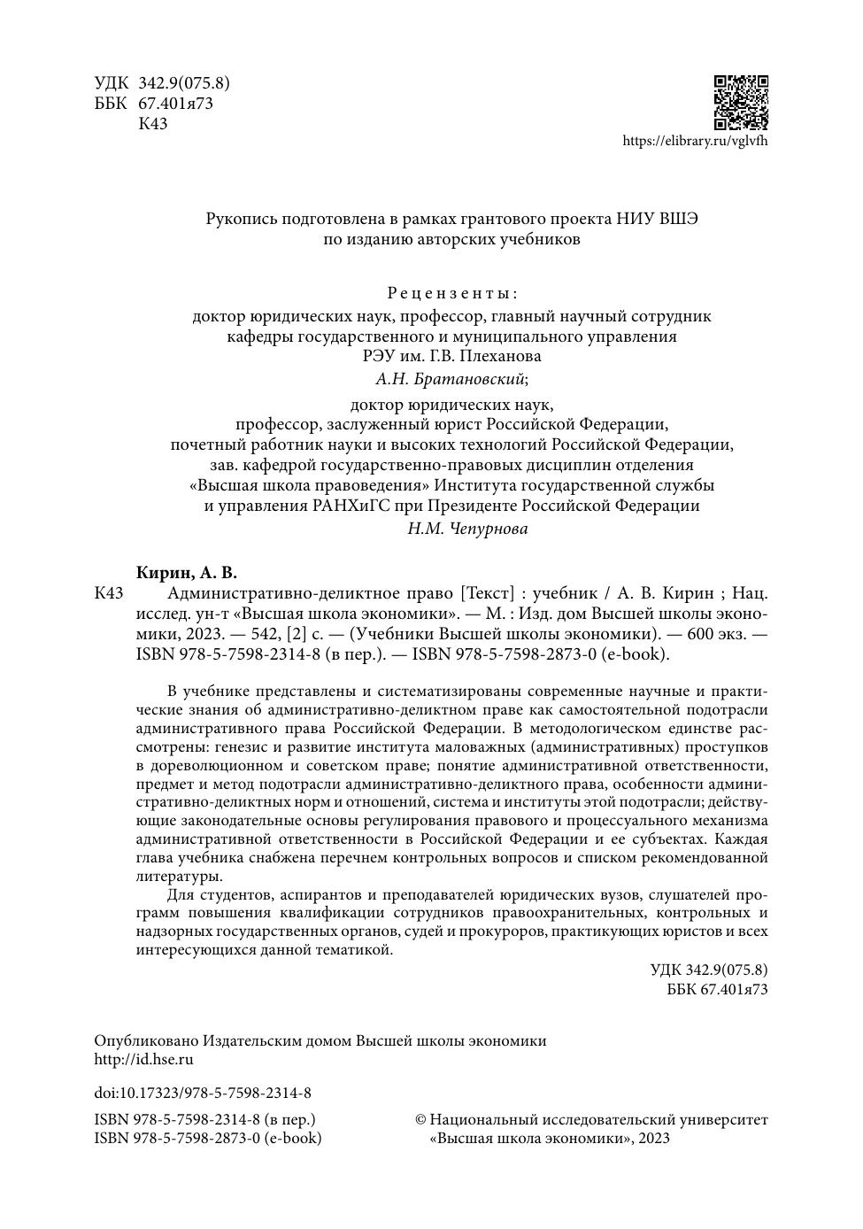 В учебнике представлены и систематизированы современные научные и практические знания об административно-деликтном праве как самостоятельной подотрасли административного права Российской Федерации. В методологическом единстве рассмотрены: генезис и развитие института маловажных (административных) проступков в дореволюционном и советском праве; понятие административной ответственности, предмет и метод подотрасли административно-деликтного права, особенности административно-деликтных норм и отношений, система и институты этой подотрасли; действующие законодательные основы регулирования правового и процессуального механизма административной ответственности в Российской Федерации и ее субъектах. Каждая глава учебника снабжена перечнем контрольных вопросов и списком рекомендованной литературы.