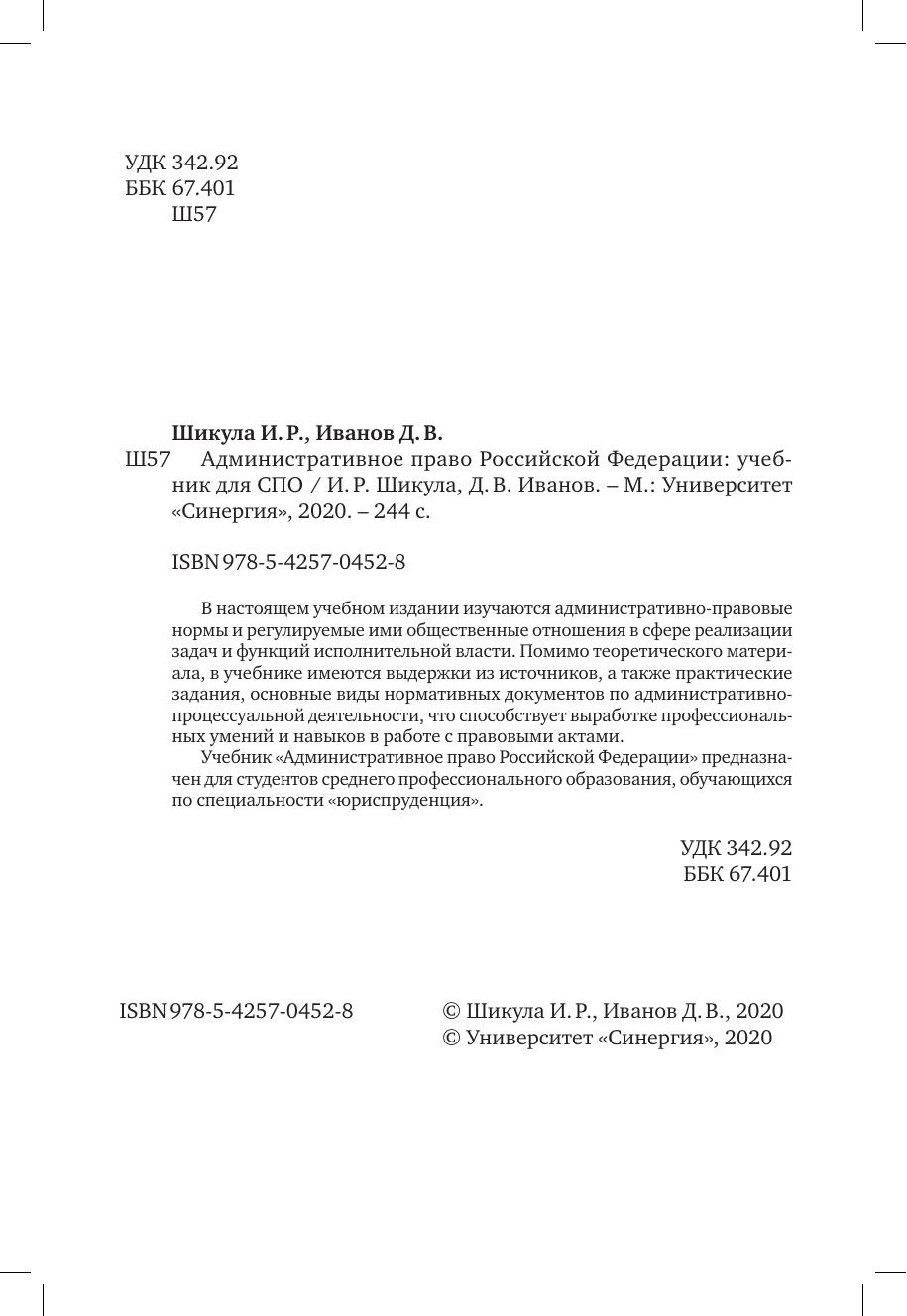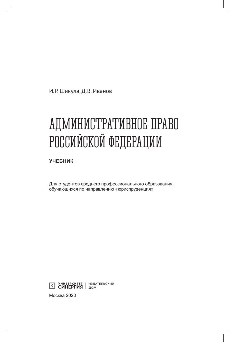 Учебник «Административное право Российской Федерации» предназначен для студентов среднего профессионального образования, обучающихся по специальности «юриспруденция».