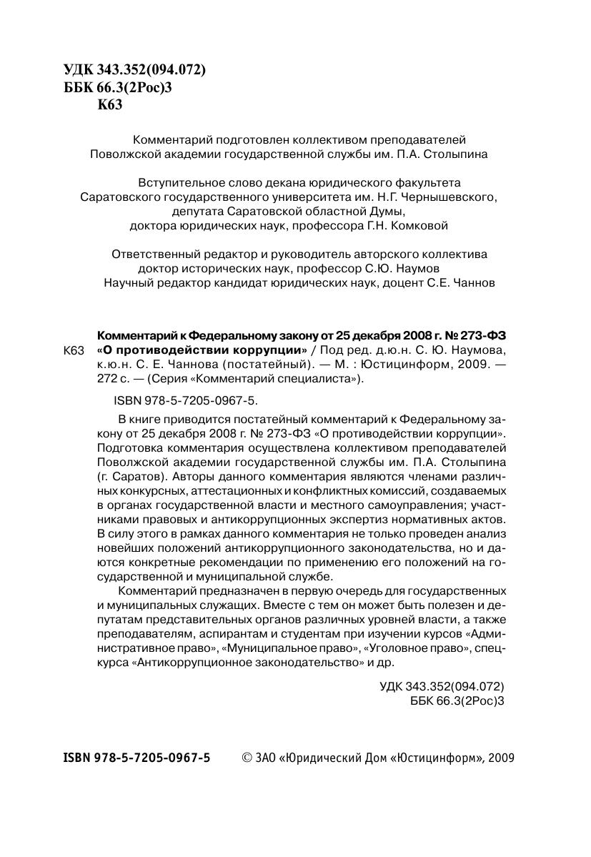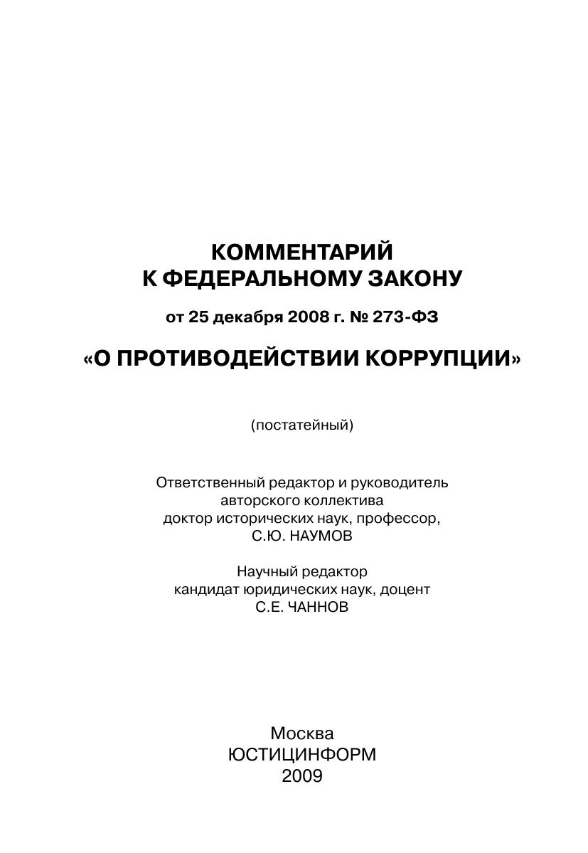Комментарий к Федеральному закону от 25 декабря 2008 г. № 273-ФЗ «О противодействии коррупции»
