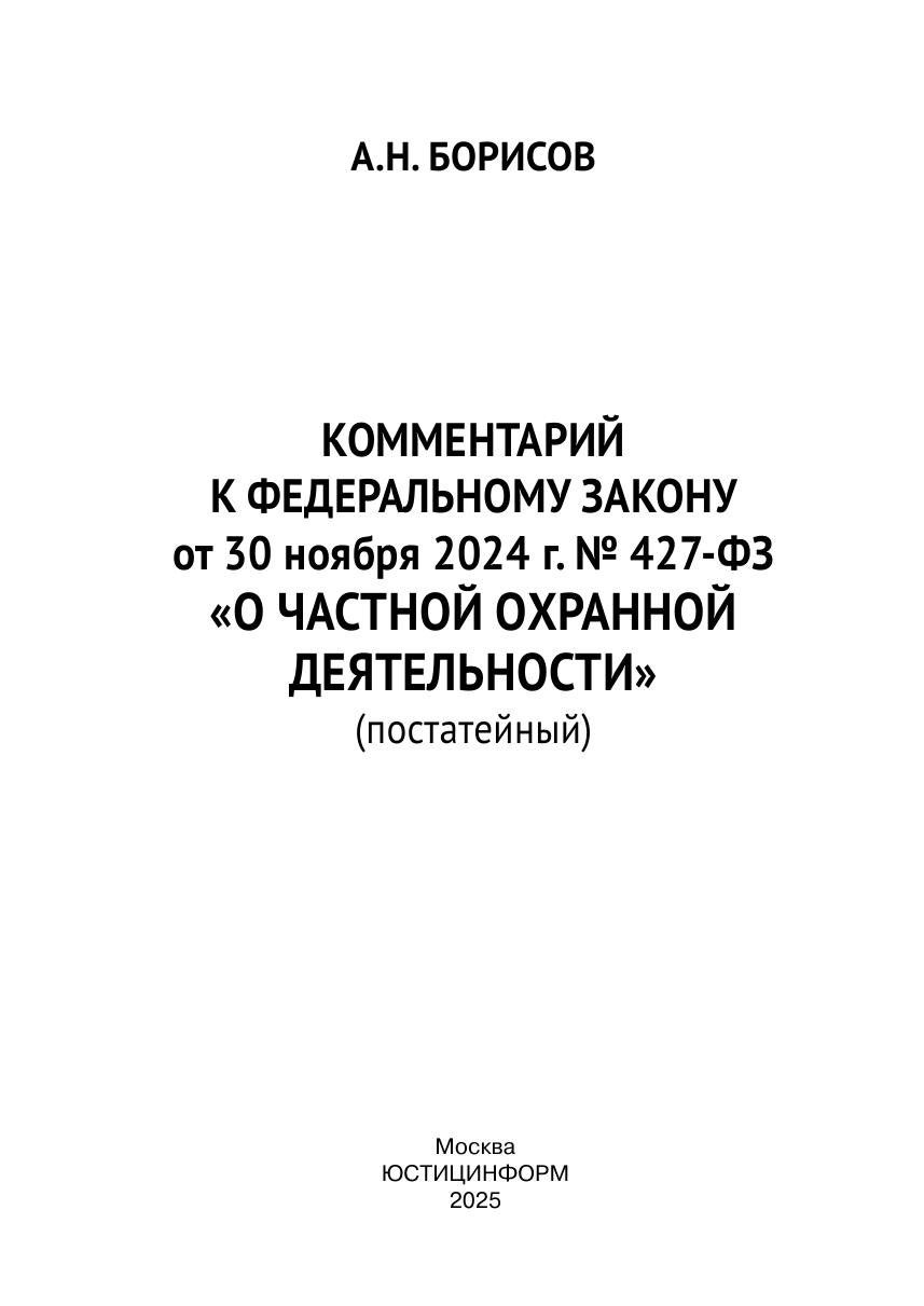 Комментарий к Федеральному закону от 30 ноября 2024 г. № 427-ФЗ «О частной охранной деятельности» (постатейный)