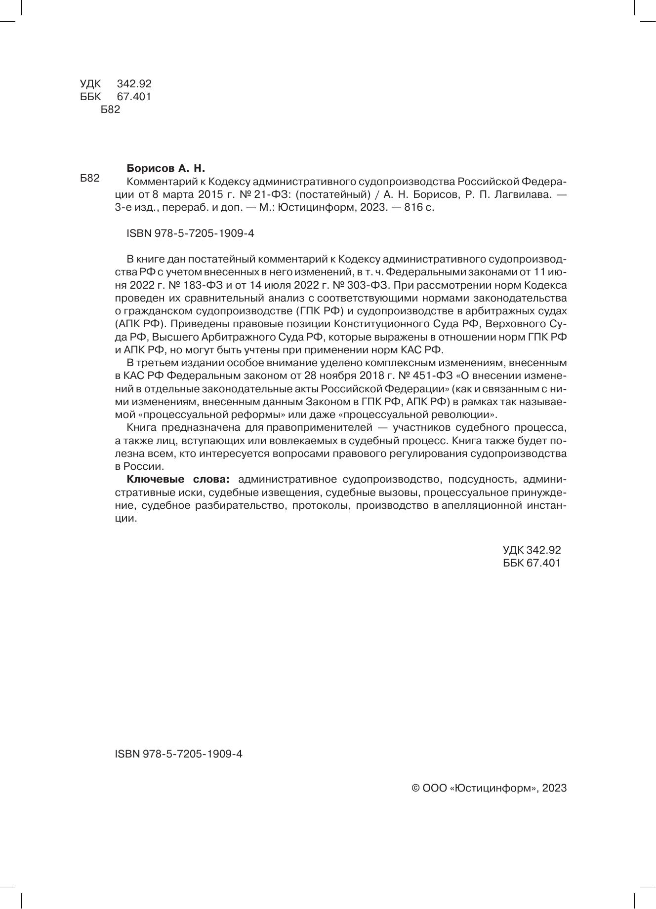 В книге дан постатейный комментарий к Кодексу административного судопроизводства РФ с учетом внесенных в него изменений, в т. ч. Федеральными законами от 11 июня 2022 г. № 183‑ФЗ и от 14 июля 2022 г. № 303‑ФЗ. При рассмотрении норм Кодекса