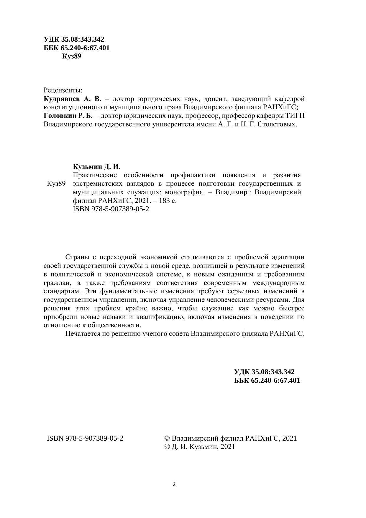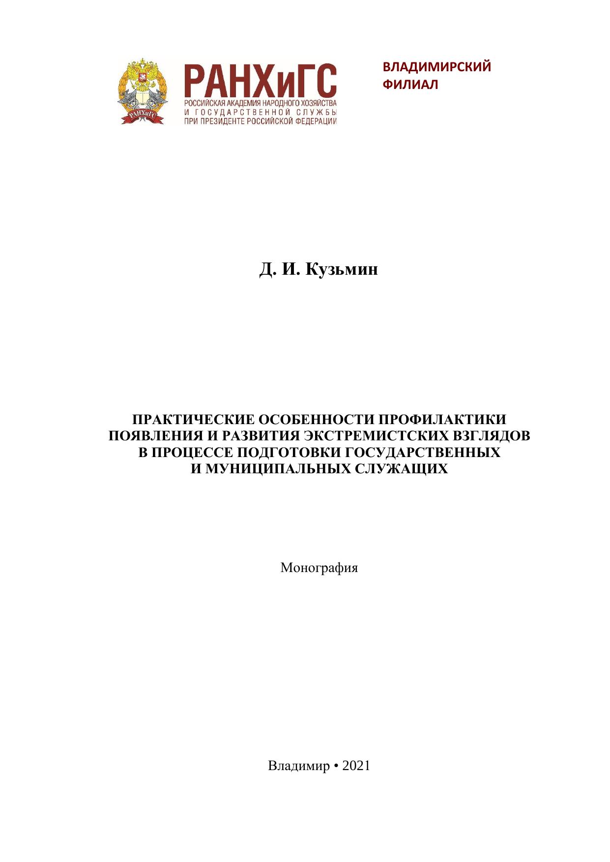 Практические особенности профилактики появления и развития экстремистских взглядов в процессе подготовки государственных и муниципальных служащих