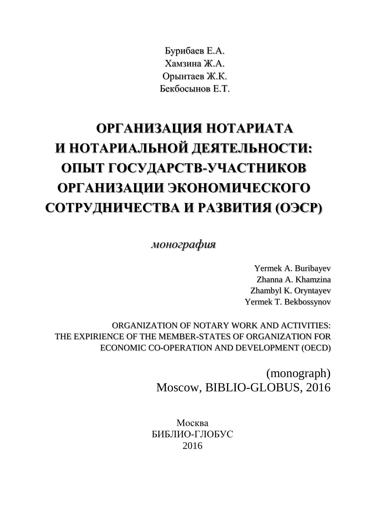 Организация нотариата и нотариальной деятельности: опыт государств-участников Организации Экономического Сотрудничества и Развития (ОЭСР)