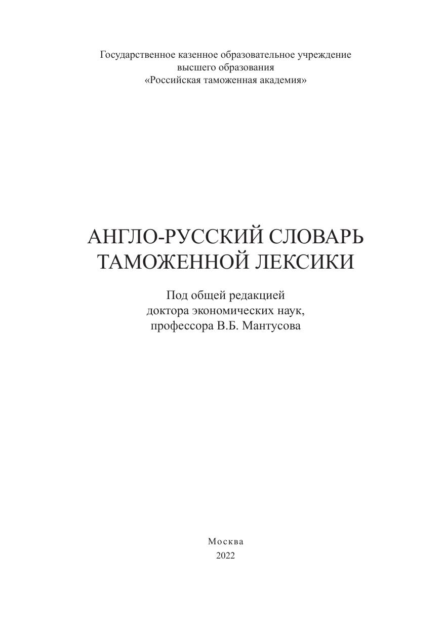 Англо-русский словарь таможенной лексики