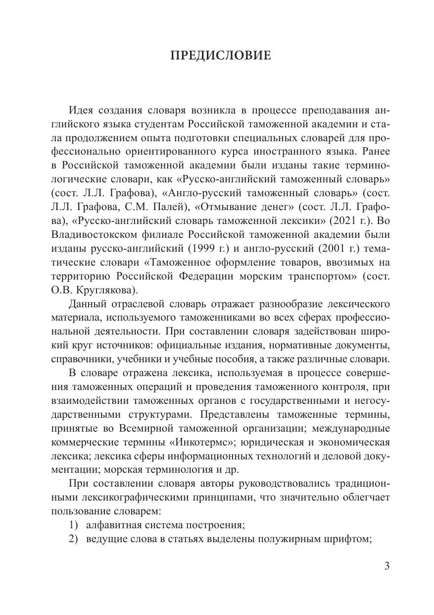 Словарь содержит около 12 тыс. слов и словосочетаний, используемых в сфере таможенного дела.