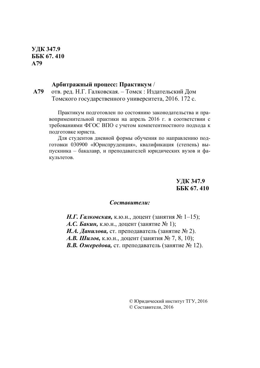 Практикум подготовлен по состоянию законодательства и правоприменительной практики на апрель 2016 г. в соответствии с требованиями ФГОС ВПО с учетом компетентностного подхода к подготовке юриста. Для студентов дневной формы обучения по направлению подготовки 030900 «Юриспруденция», квалификация (степень) выпускника – бакалавр, и преподавателей юридических вузов и факультетов.