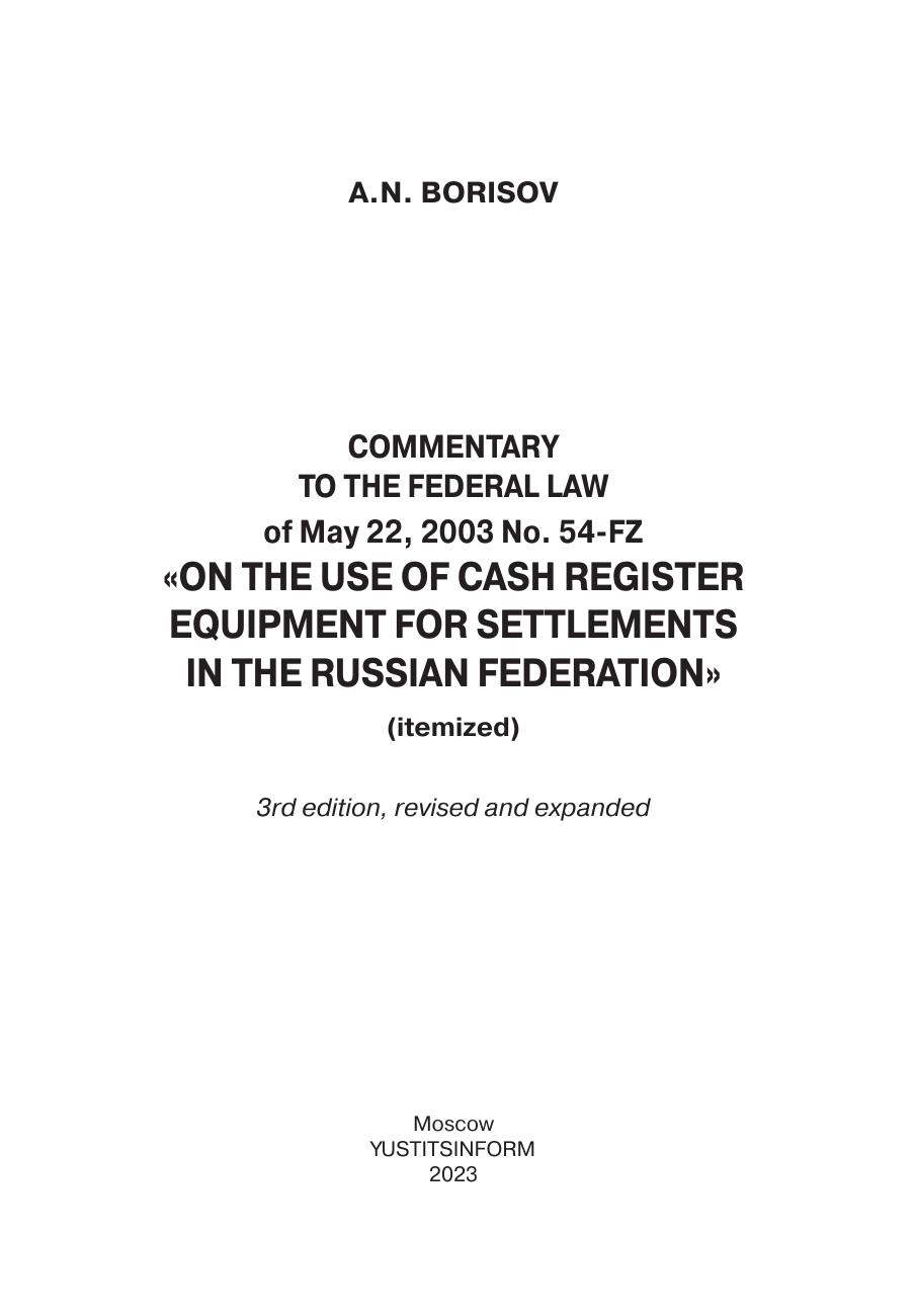 Комментарий к Федеральному закону от 22 мая 2003 г. № 54-ФЗ «О применении контрольно-кассовой техники при осуществлении расчетов в Российской Федерации»