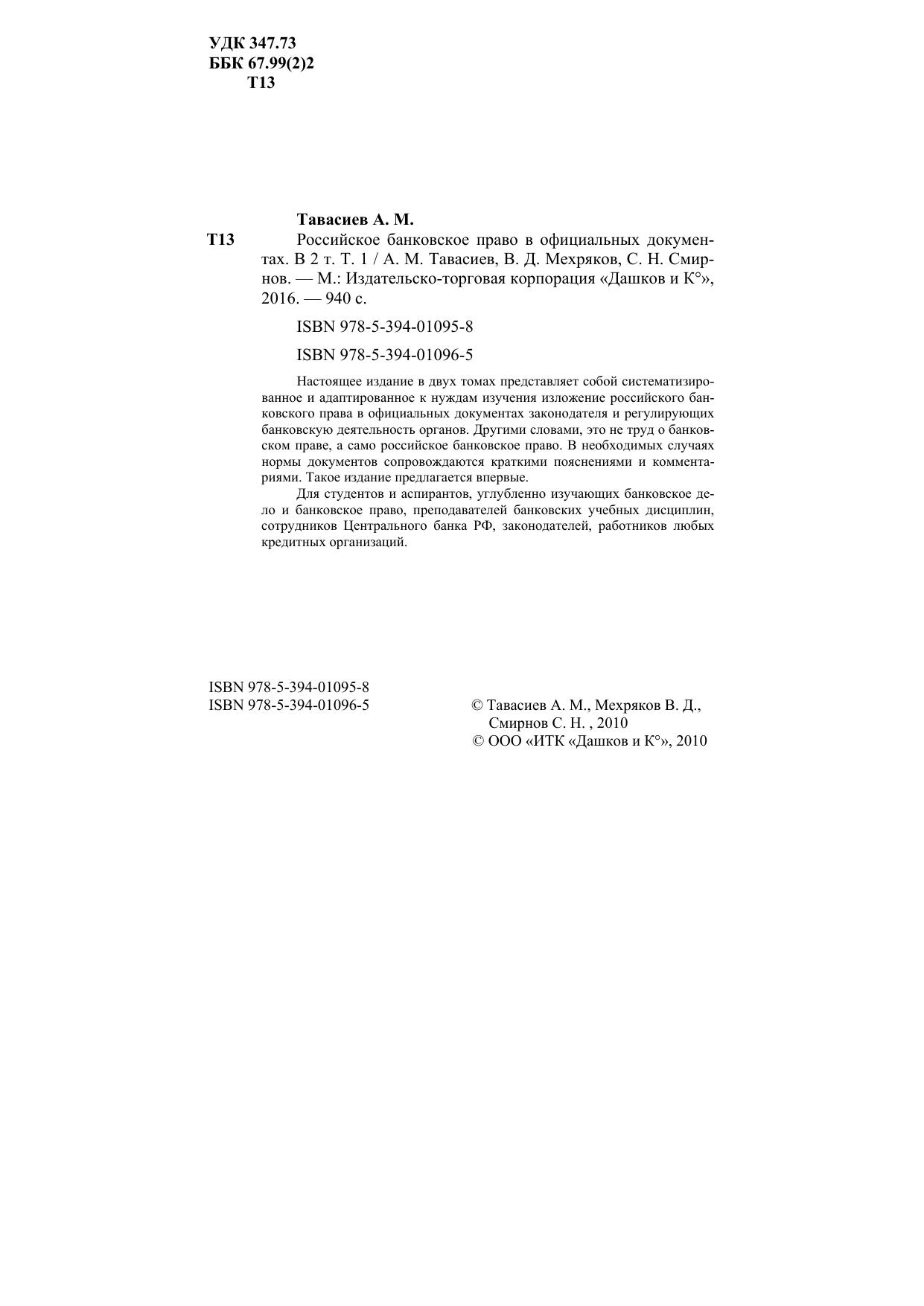 Для студентов и аспирантов, углубленно изучающих банковское дело и банковское право, преподавателей банковских учебных дисциплин, сотрудников Центрального банка РФ, законодателей, работников любых кредитных организаций.