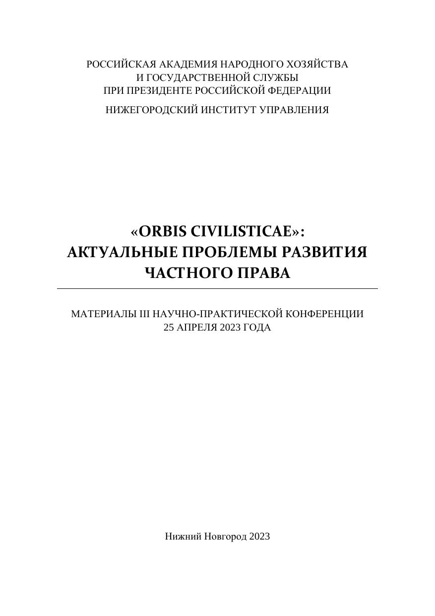 «Orbis civilisticae»: актуальные проблемы развития частного права: сборник материалов III Научно-практической конференции