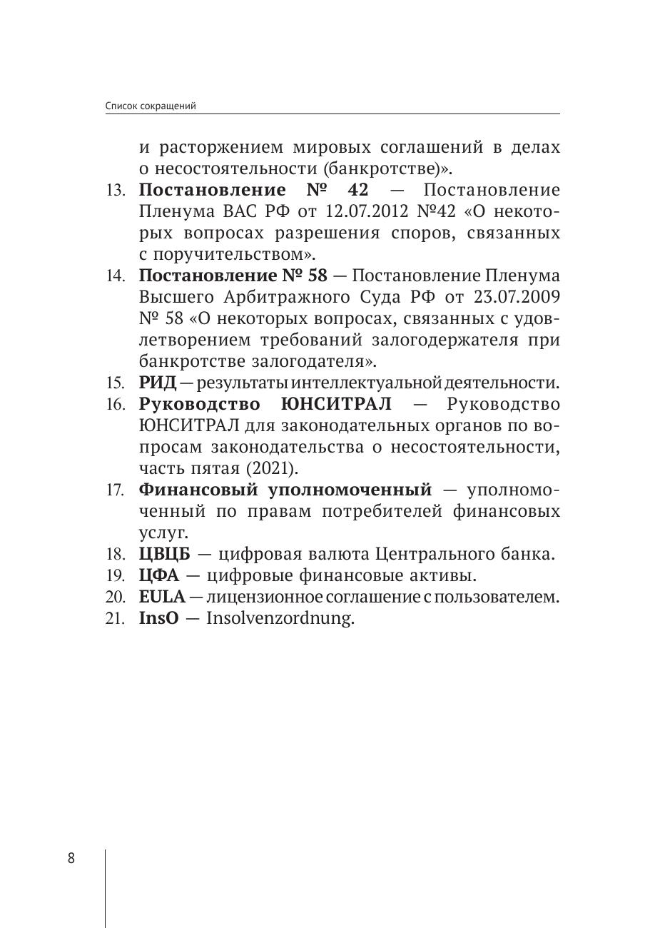Авторы проводят ретроспективный анализ становления института несостоятельности, исследуют возможности совершенствования способов инициации дела о банкротстве, порядка проведения отдельных процедур в процессе несостоятельности и др. В указанных сферах исследования используются такие специально-юридические методы исследования как: формально-юридический, догматический, сравнительно-правовой и историко-правовой. Материалы, опубликованные в сборнике, представляют интерес как для практикующих юристов, так и для преподавателей и обучающихся юридических факультетов различных учебных заведений.