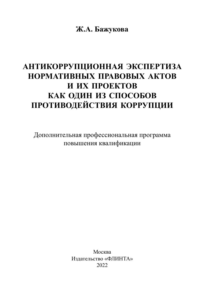 Антикоррупционная экспертиза нормативных правовых актов и их проектов как мера по профилактке коррупции: дополнительная профессиональная программа повышения квалификации