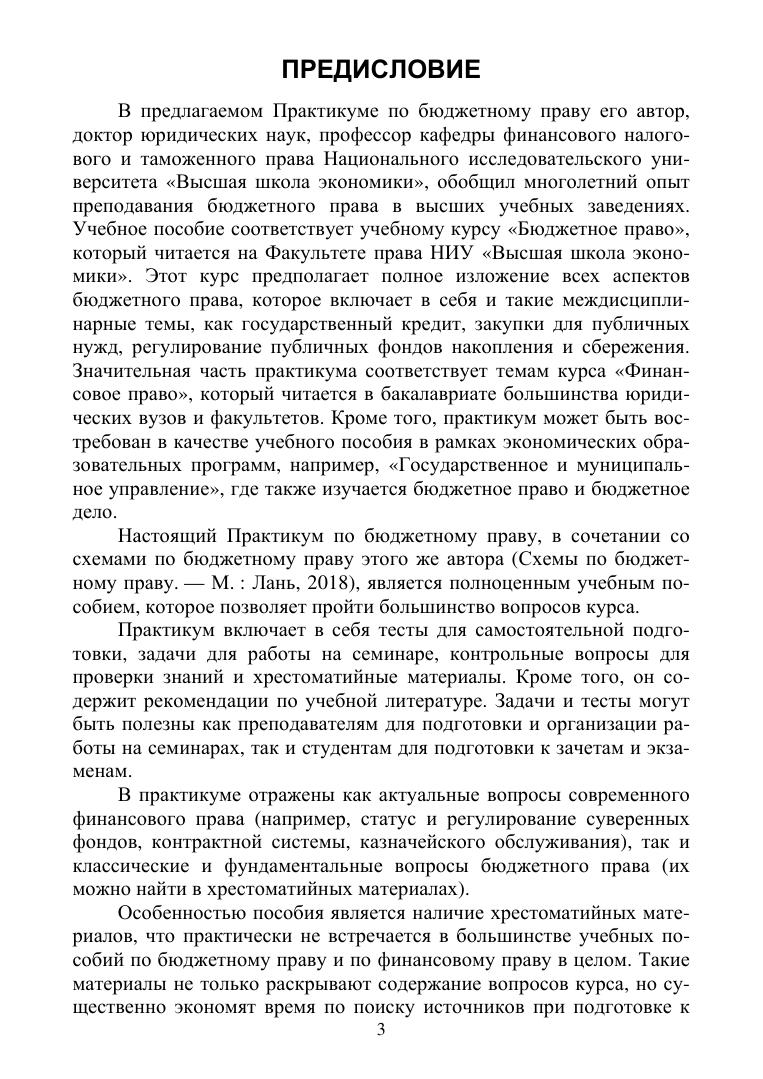 Учебное пособие соответствует учебному курсу «Бюджетное право», который читается на факультете права НИУ «Высшая школа экономики», и является результатом многолетнего преподавания автором данной дисциплины. Значительная часть практикума соответствуют отдельным темам курса «Финансовое право», который читается в бакалавриате большинства юридических вузов и факультетов. Кроме того, практикум может быть востребован и в рамках экономических образовательных программ, например, «Государственное и муниципальное управление», где также изучается бюджетное право и бюджетное дело.