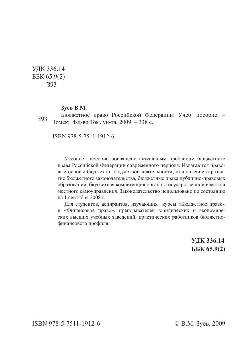 Учебное пособие посвящено актуальным проблемам бюджетного права Российской Федерации современного периода. Излагаются правовые основы бюджета и бюджетной деятельности, становление и развитие бюджетного законодательства, бюджетные права публично-правовых образований, бюджетная компетенция органов государственной власти и местного самоуправления. Законодательство использовано по состоянию на 1 сентября 2008 г. Для студентов, аспирантов, изучающих курсы «Бюджетное право» и «Финансовое право», преподавателей юридических и экономических высших учебных заведений, практических работников бюджетно-финансового профиля.
