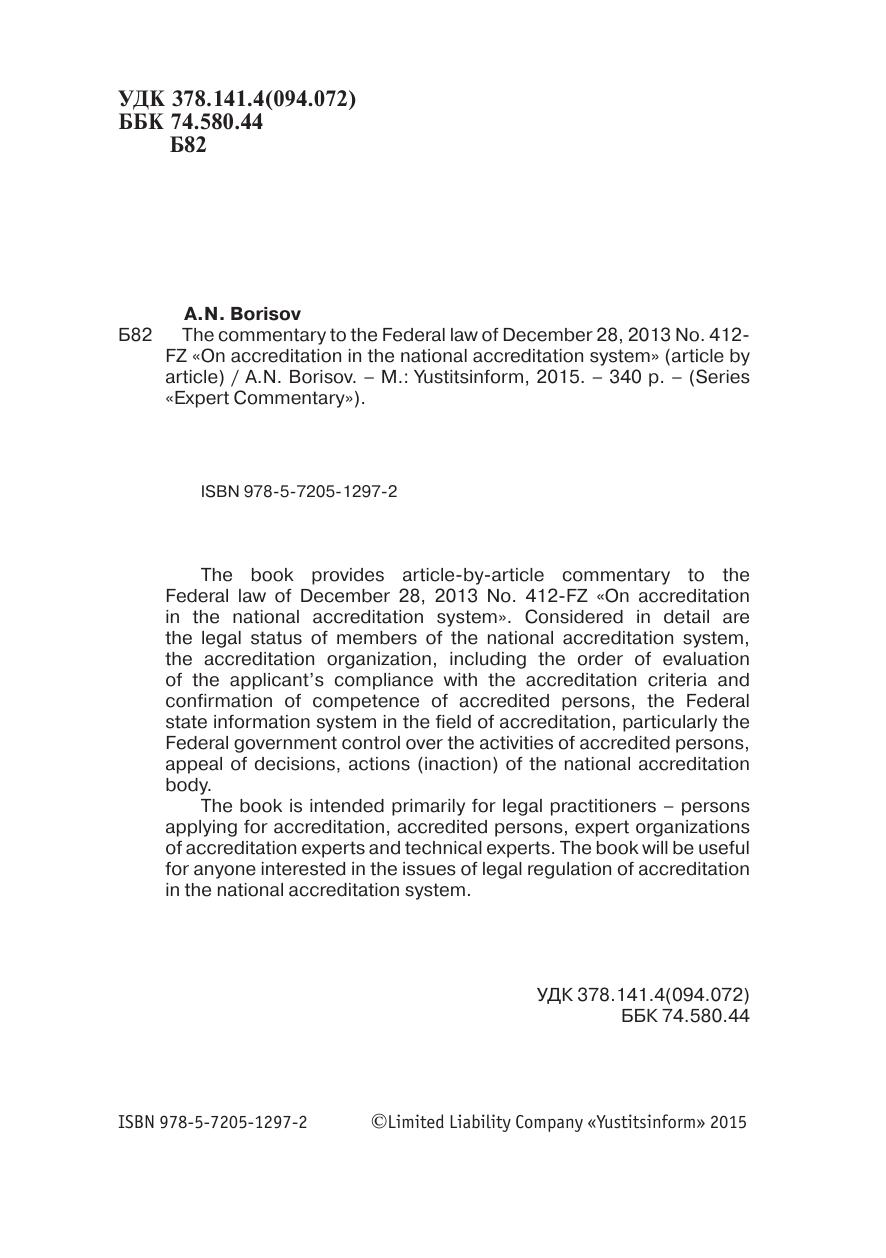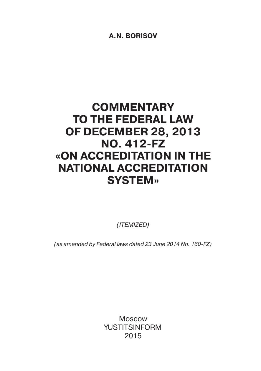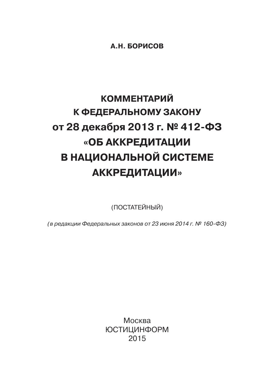 Комментарий к Федеральному закону от 28 декабря 2013 г. № 412-ФЗ «Об аккредитации в национальной системе аккредитации» (постатейный)